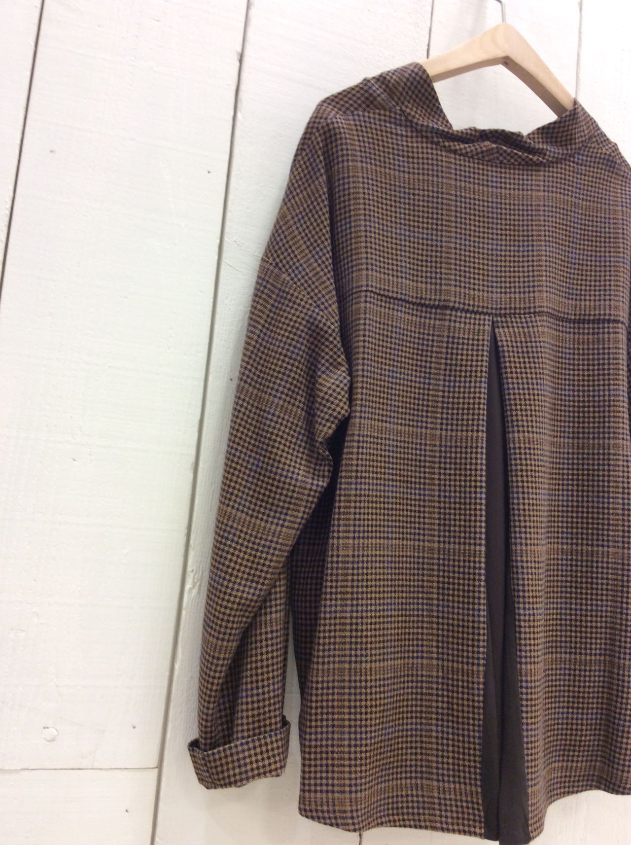 袖口の折り返しや、裾や襟リブのロール編み出しで、遊び心をプラスしたデザインです。