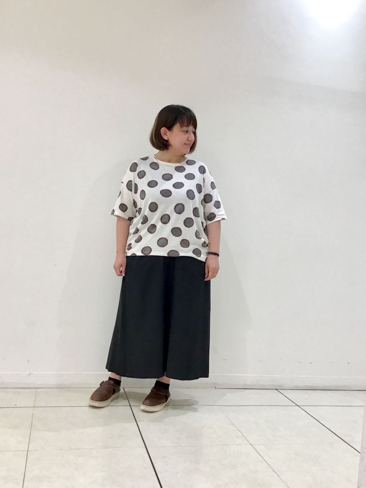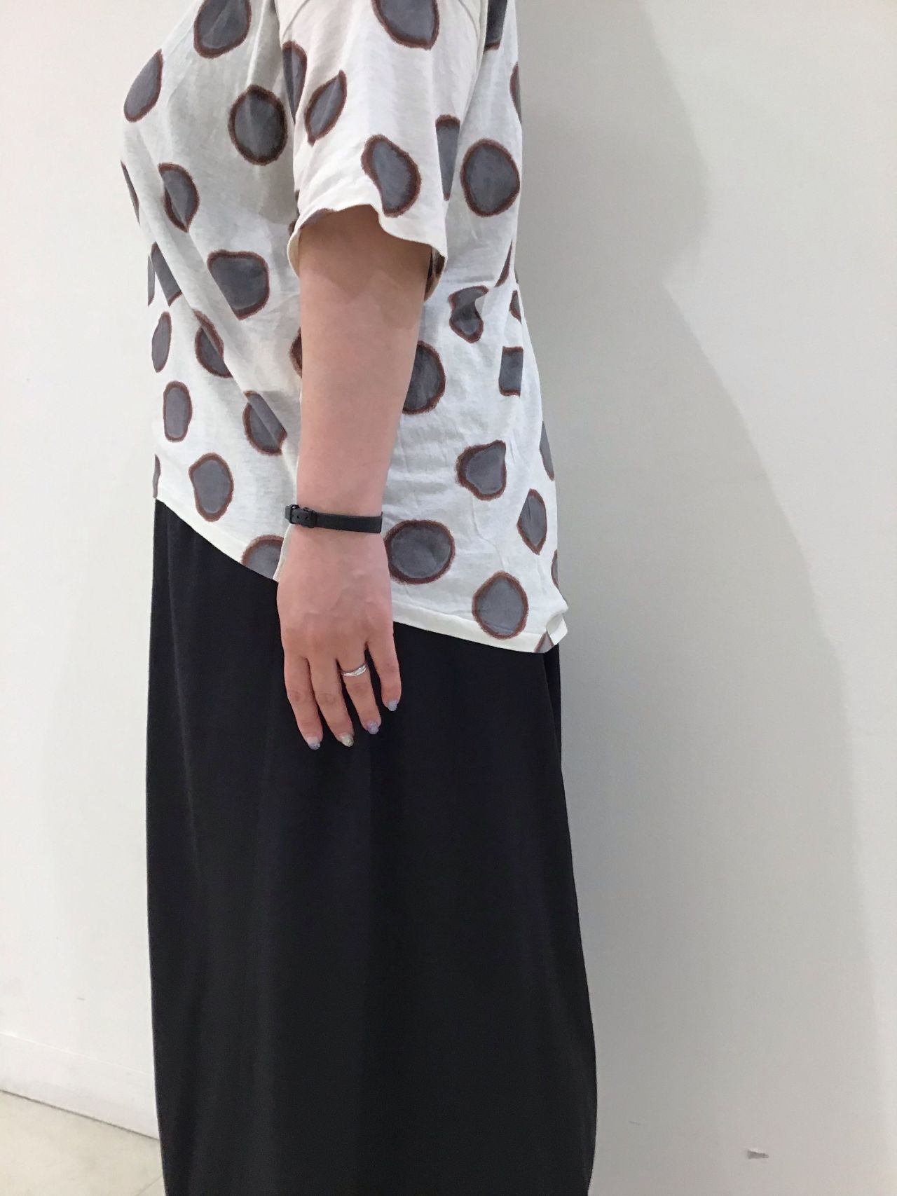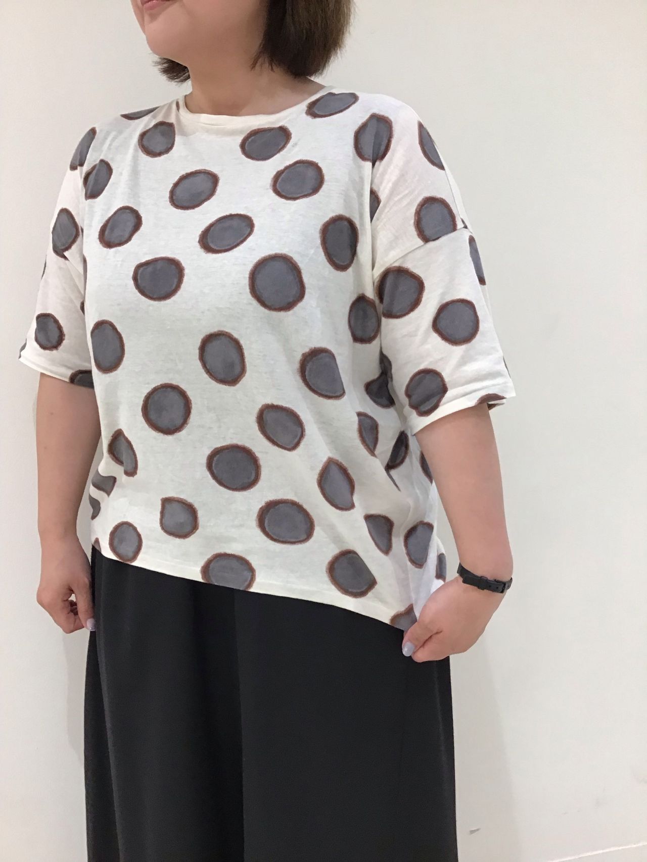 ネイビーのドットがさりげないトップグレー