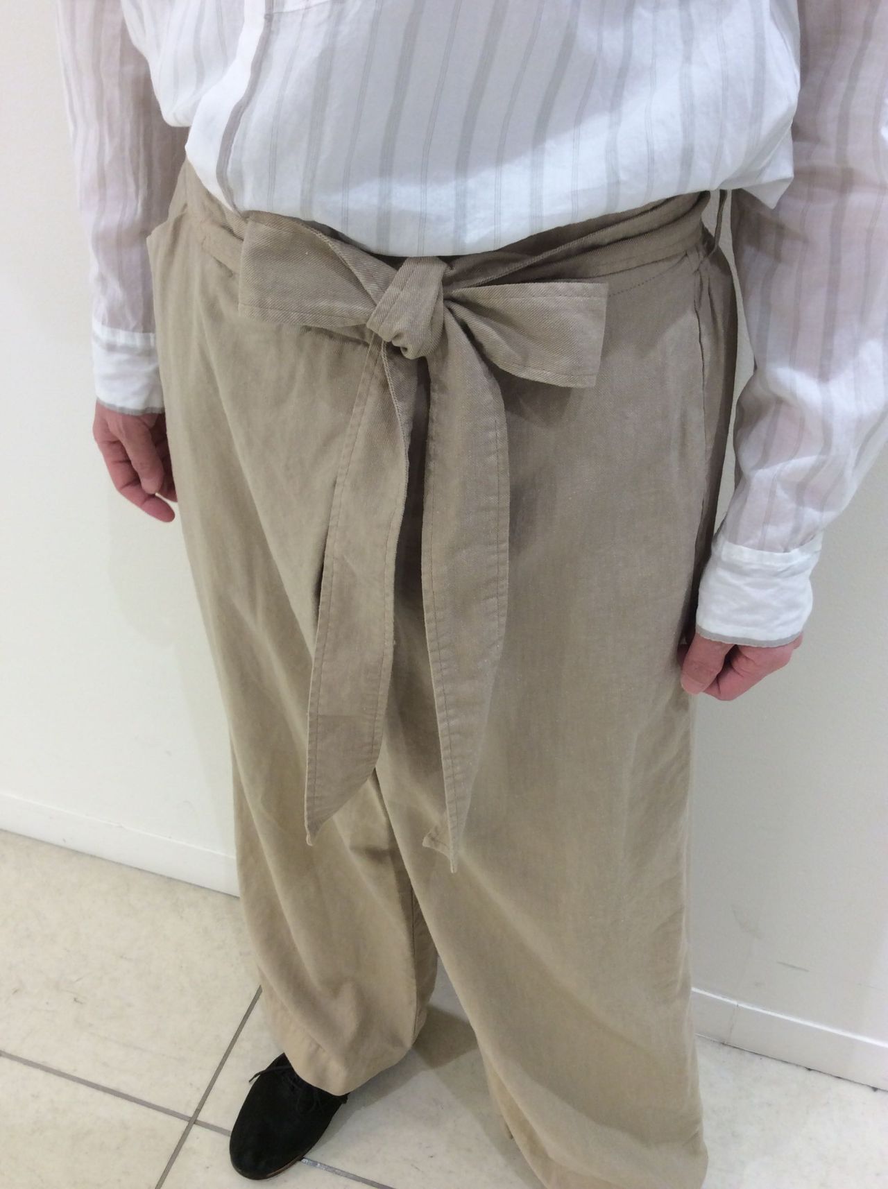 落ち感あるシルエットが綺麗なラップパンツ。