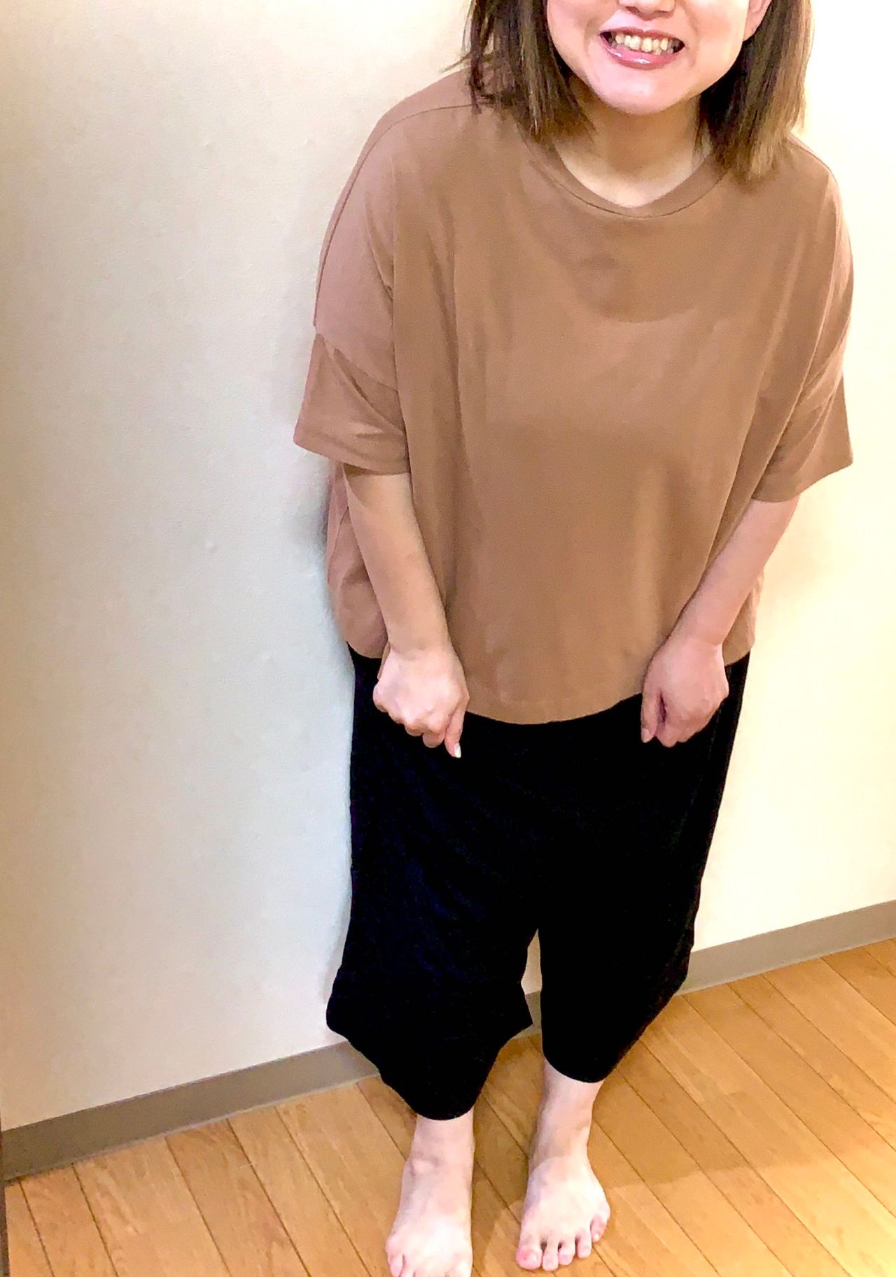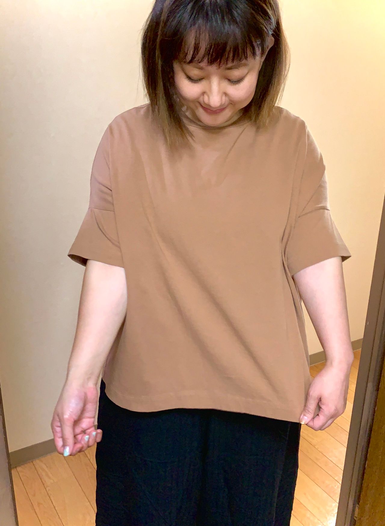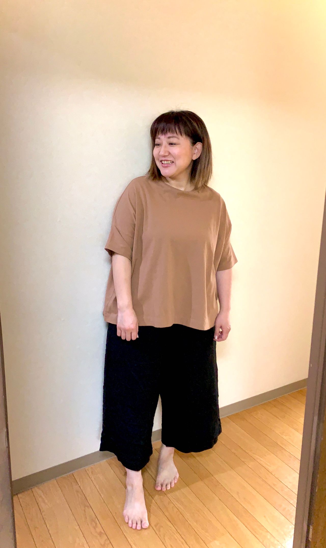 だらしなく見えないように首に沿うようにデザインされた襟ぐりと、長すぎず短すぎず程よい丈感で、とにかく着やすいの一言。