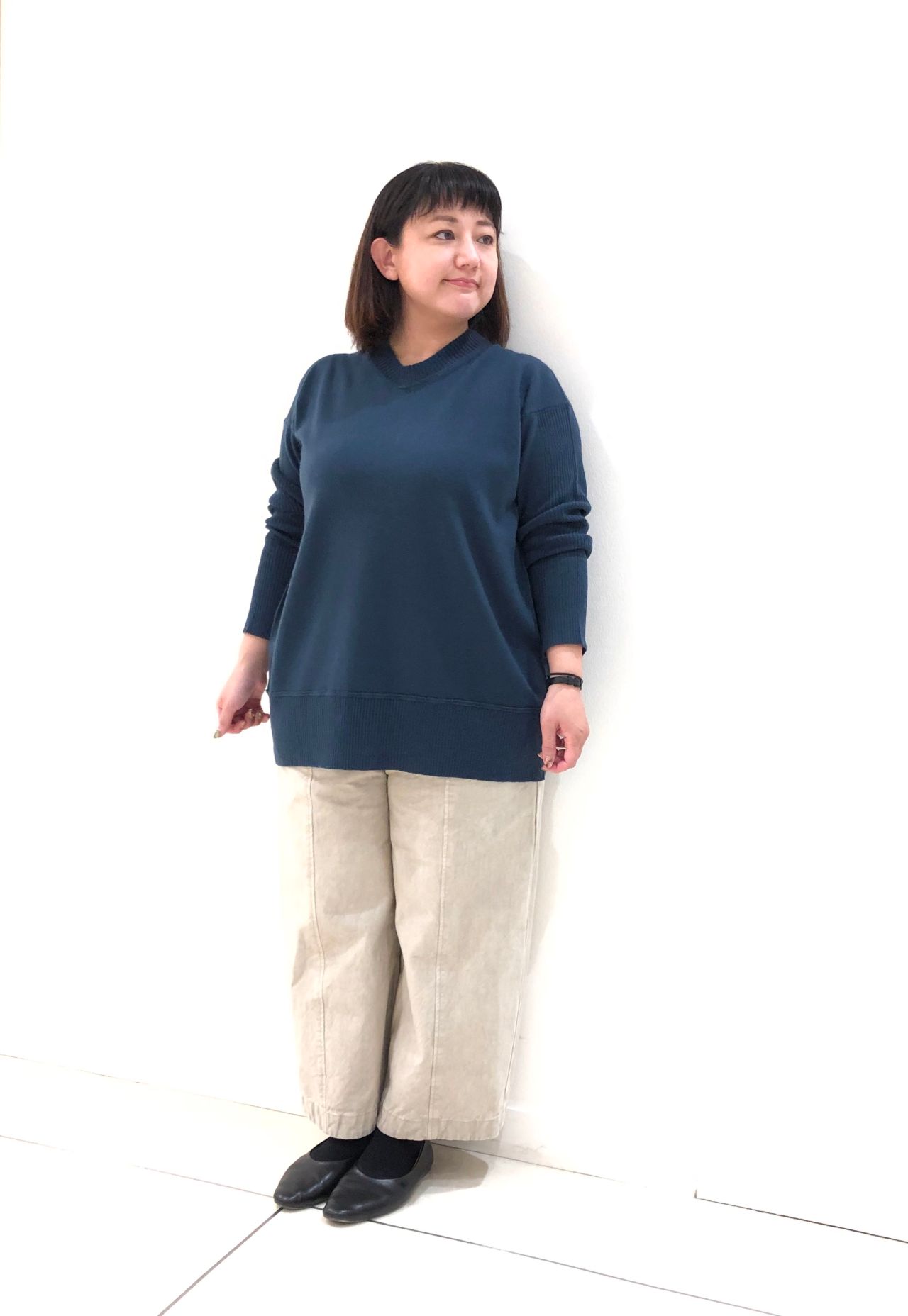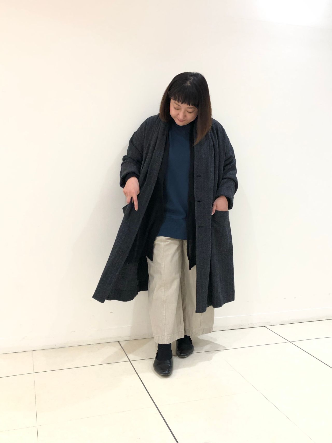 ウール100%なので、ふんわりとした素材感で軽い着心地です。
