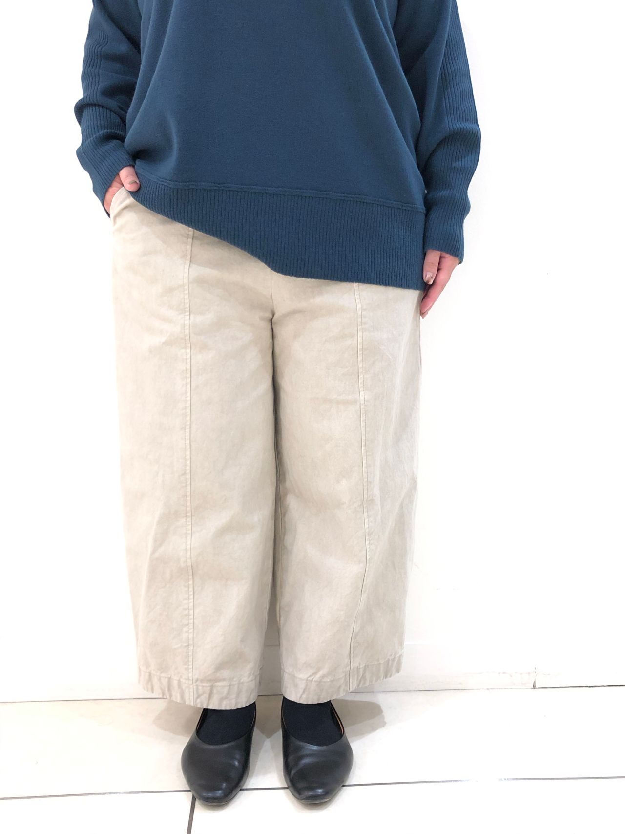 綿100%の切替クロップドパンツ。