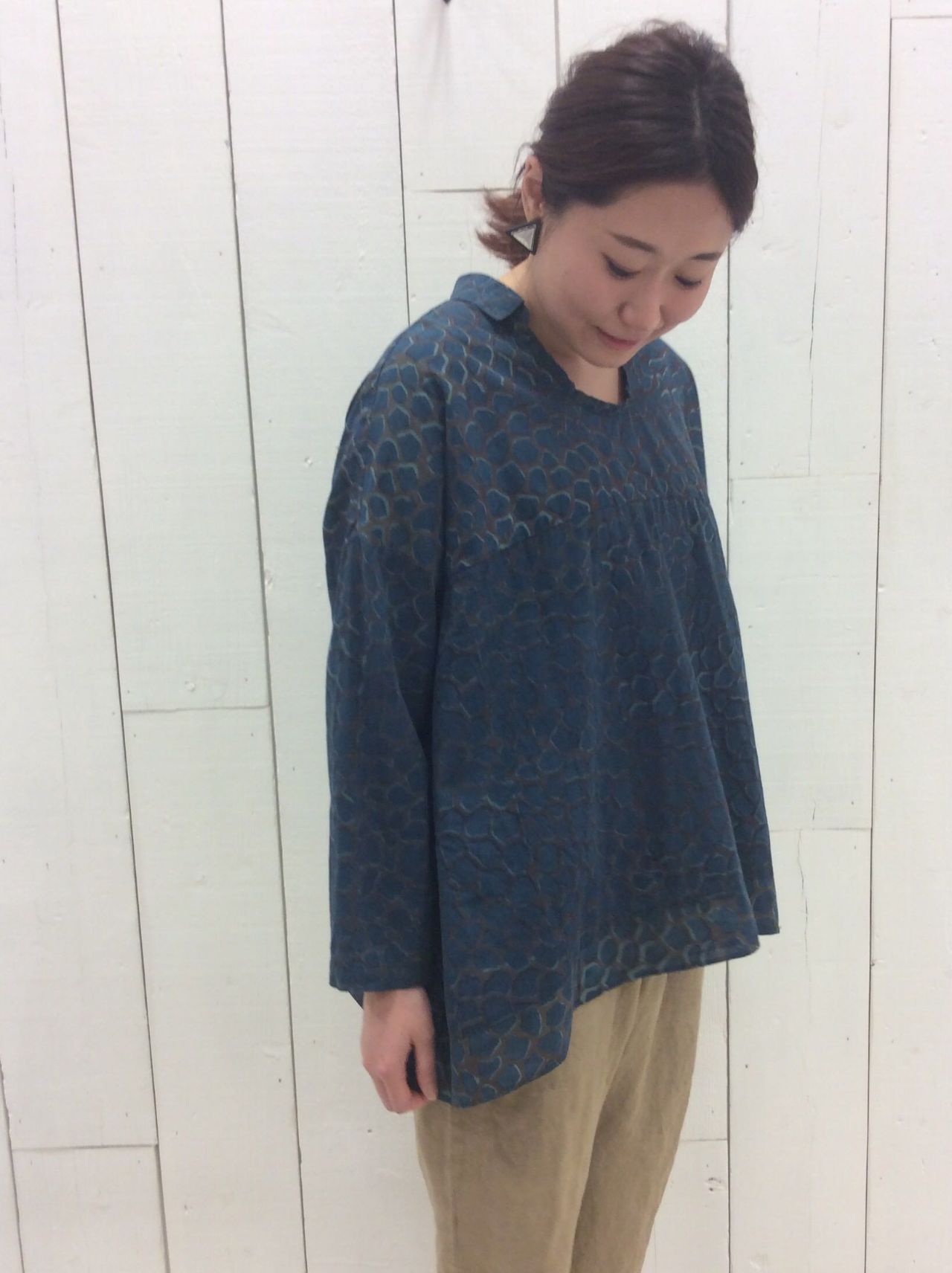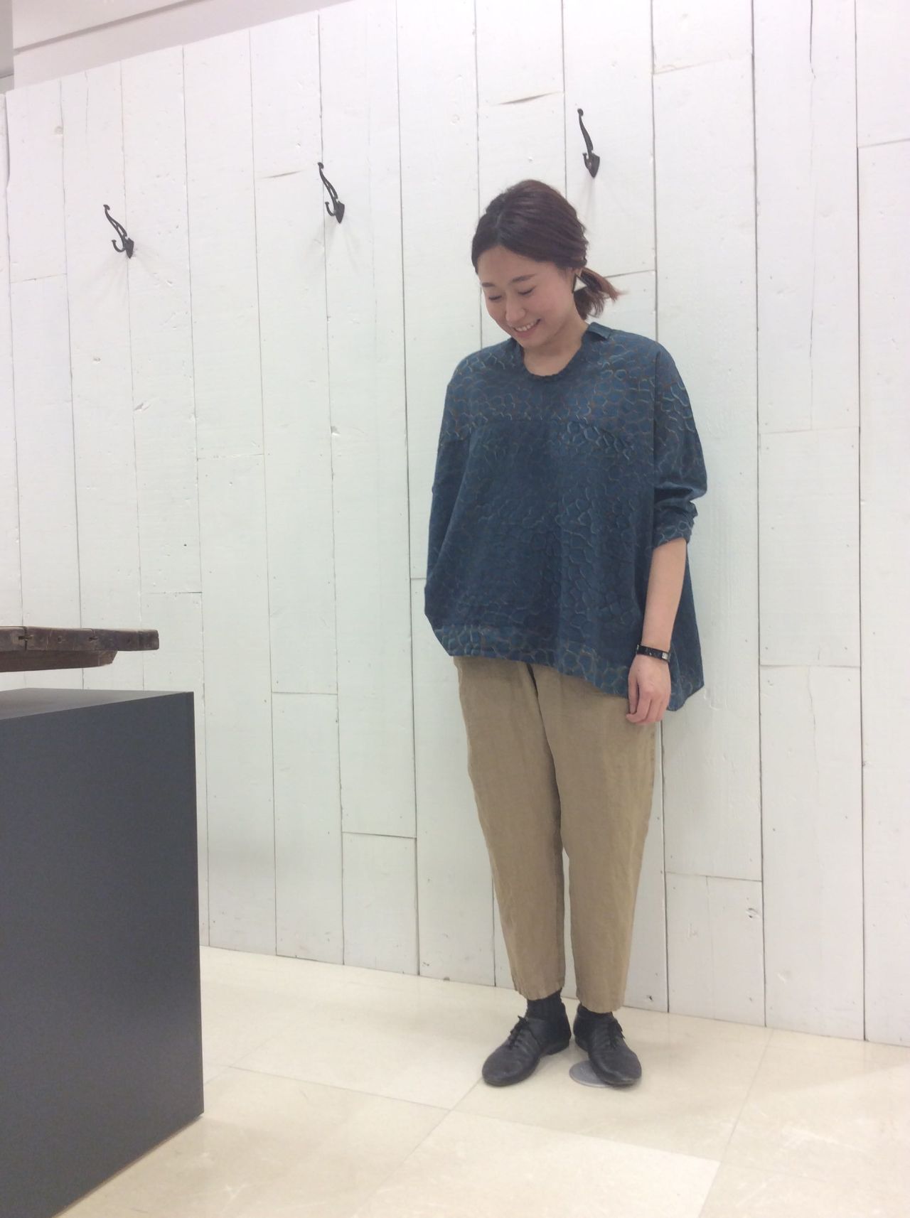 綿100%のゆったりとしたシルエットで、ボトムを選ばず合わせやすい形です。