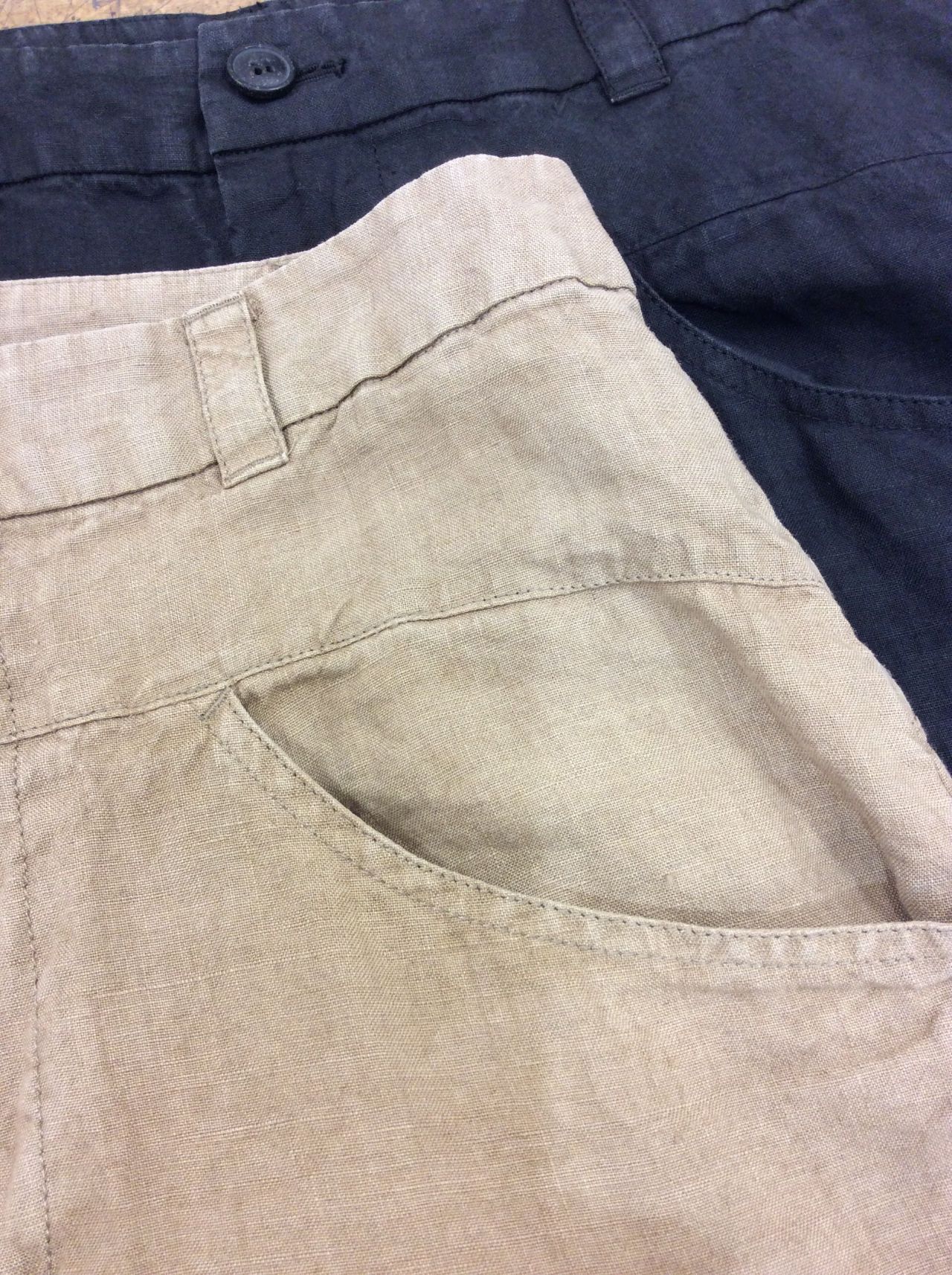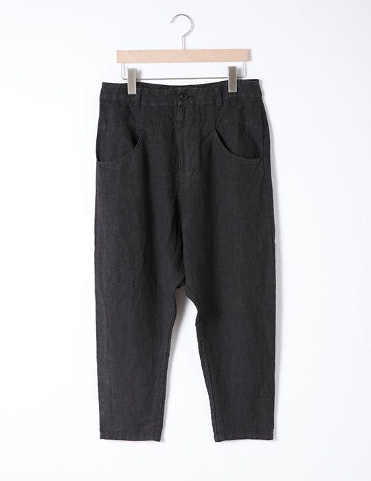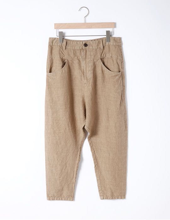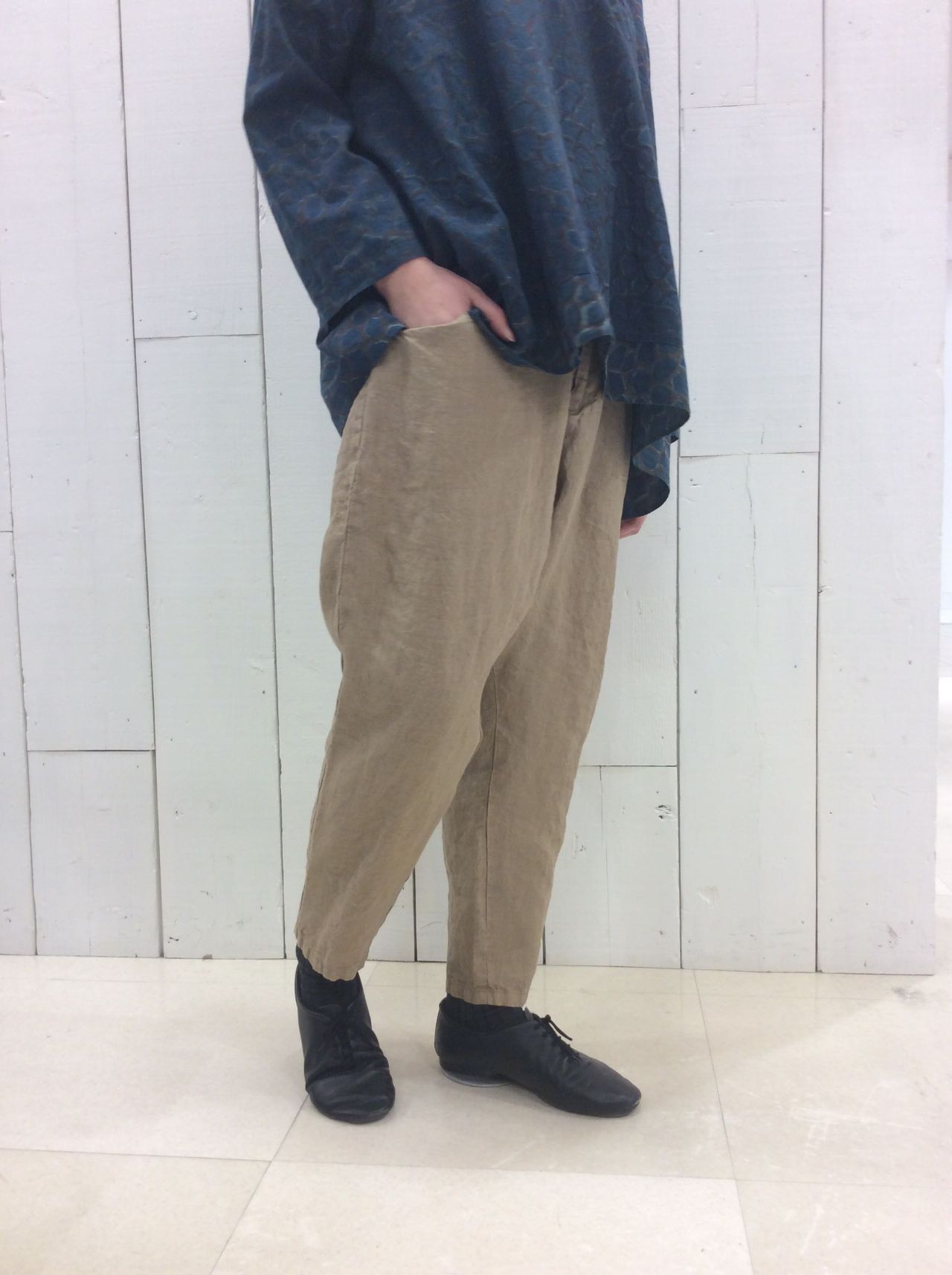 程よく深めの股上。トロミのあるリネン素材なので、ボリューム無くスッキリしたシルエットで履いていただけます。