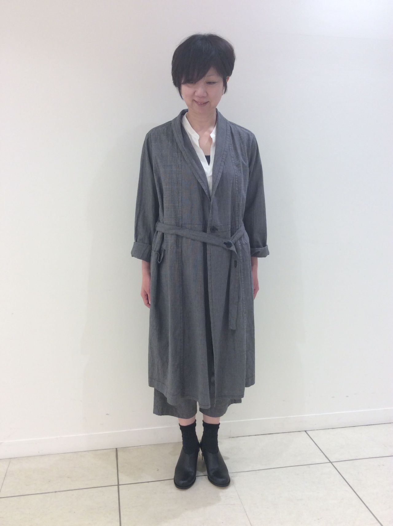 コットンリネン千鳥&グレンチェック コート