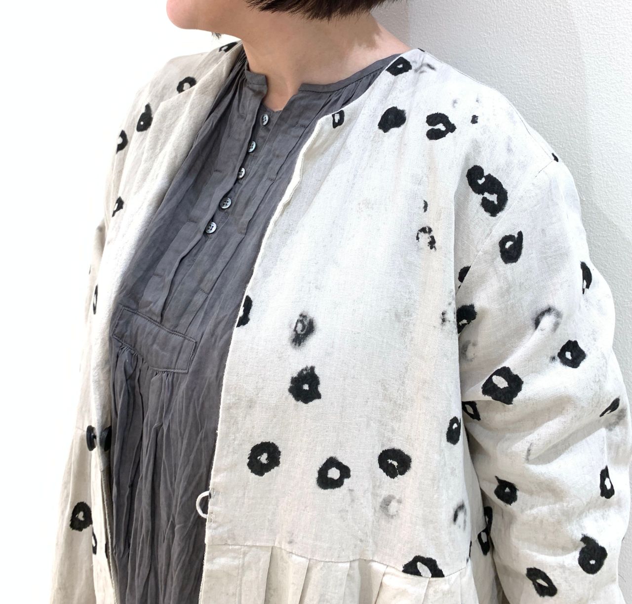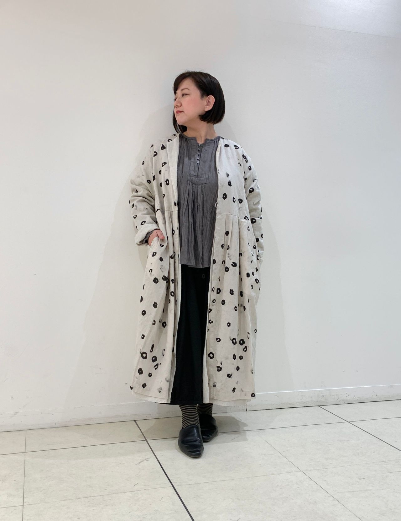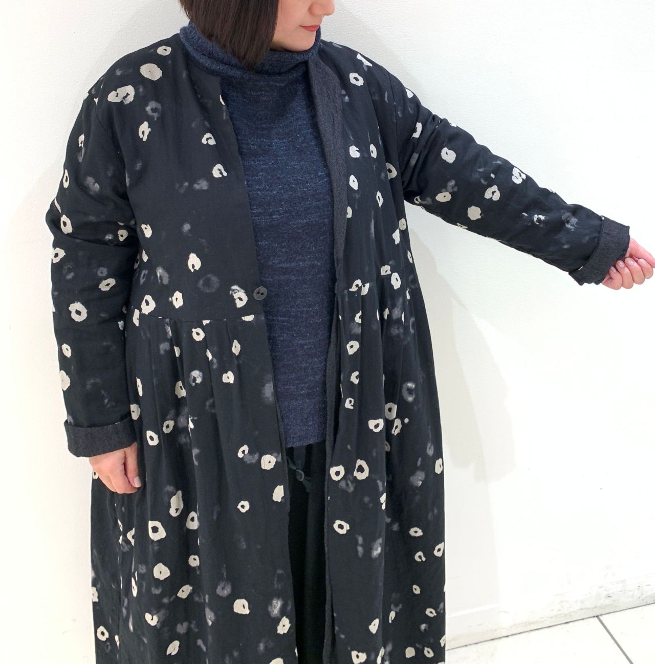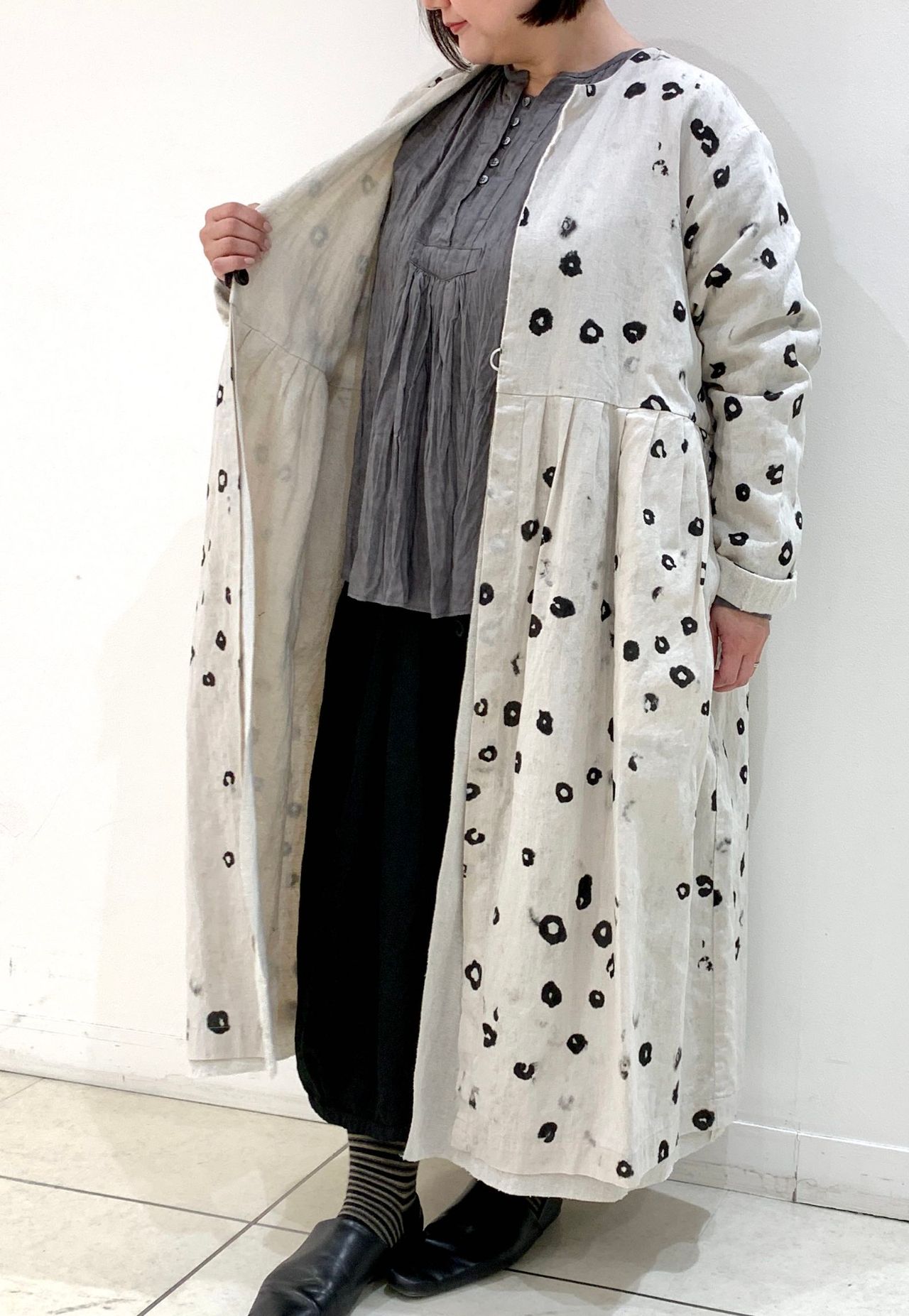 リングドット柄が目を惹くパドカレらしいオシャレなコート。