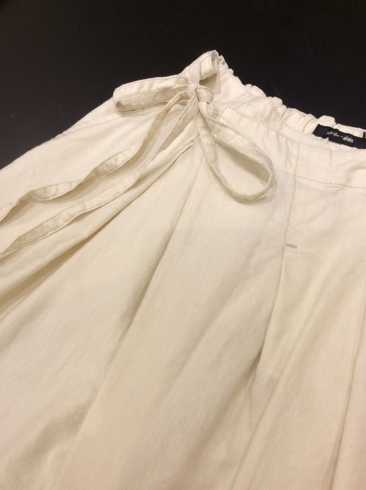 デザインタックが入ったラップワイドパンツ。