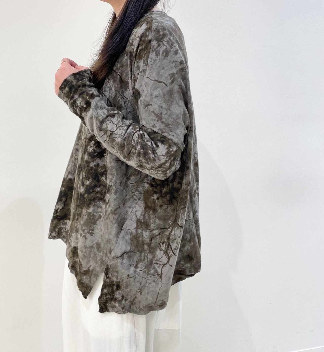 今シーズンのテーマ『Wild flowers=野草』からのインスピレーションで、スベリヒユをプリントしたカットソーカーディガンです。