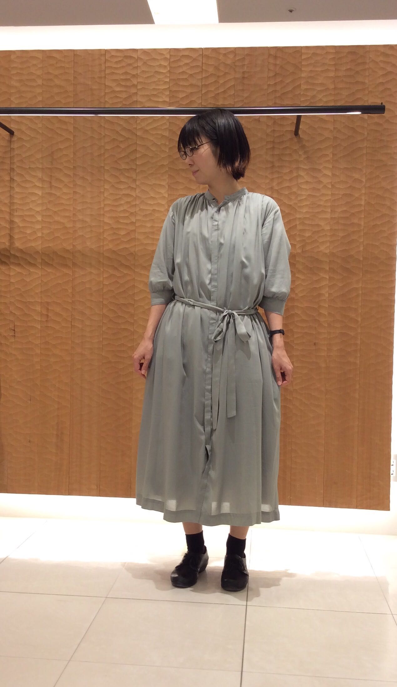 ボタンを留めてブラウジングし、ワンピースとして着てみました。
