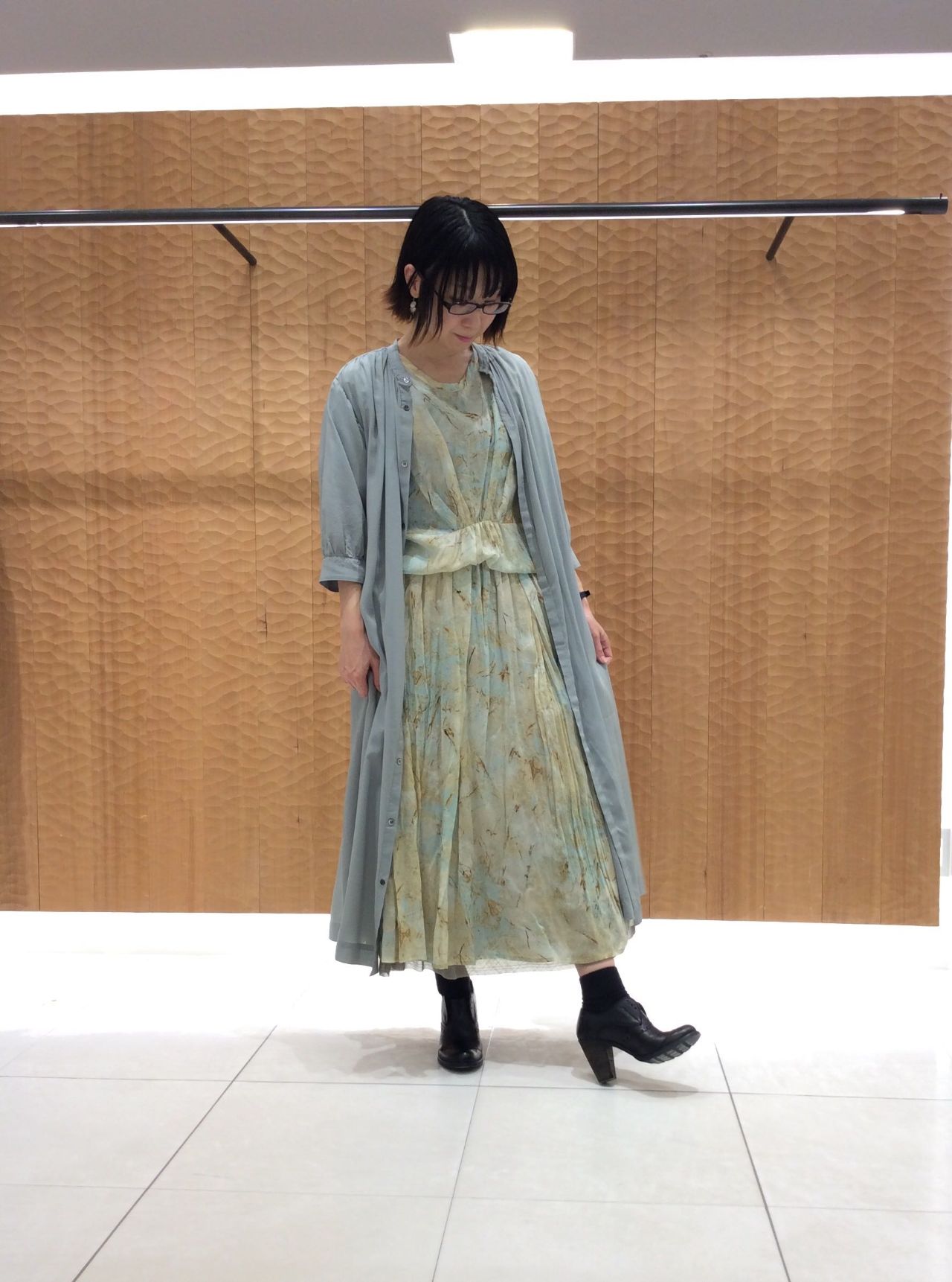 グリーンのワンピースを羽織りに、優しい春色のコーディネートにしました。