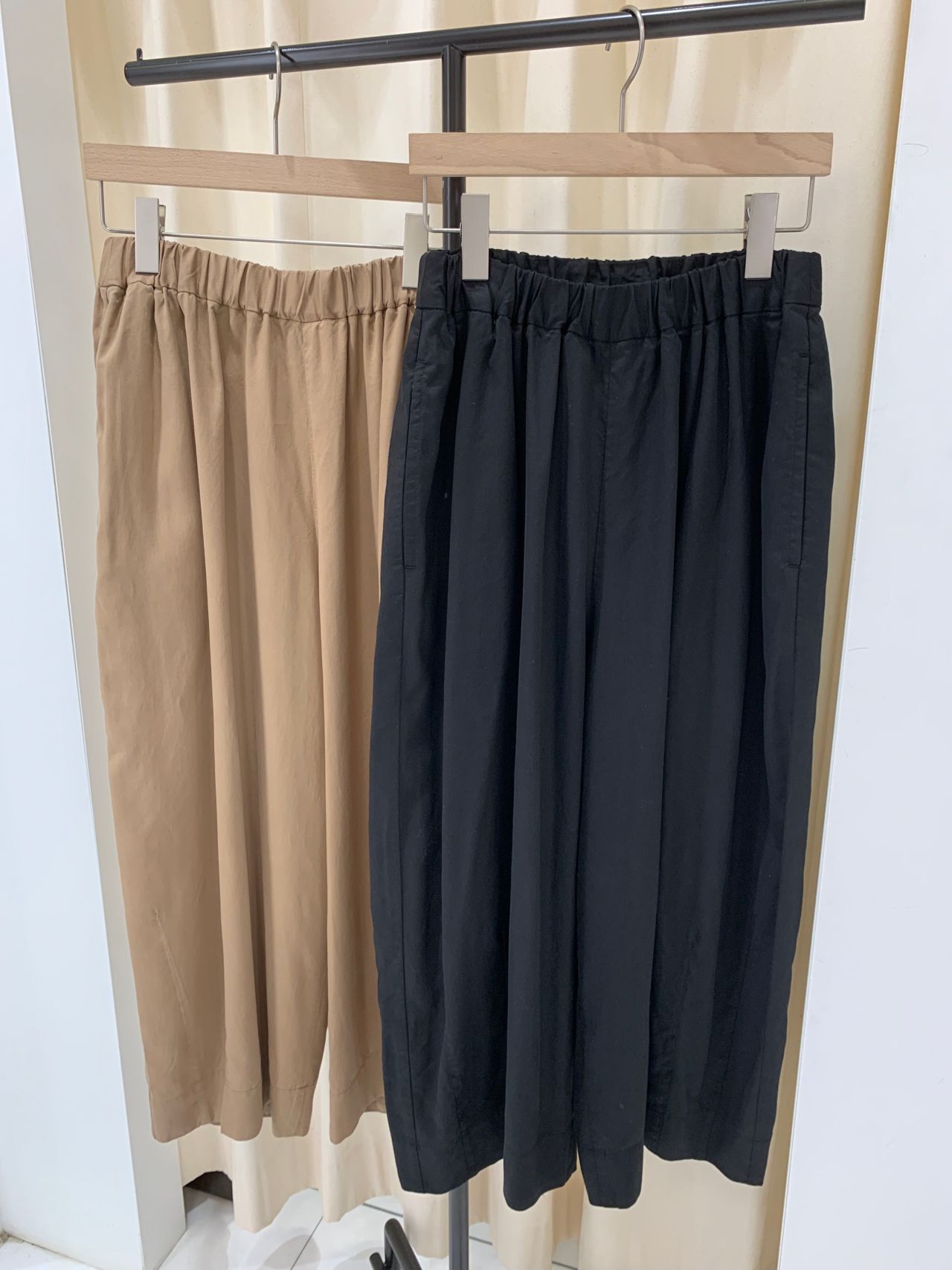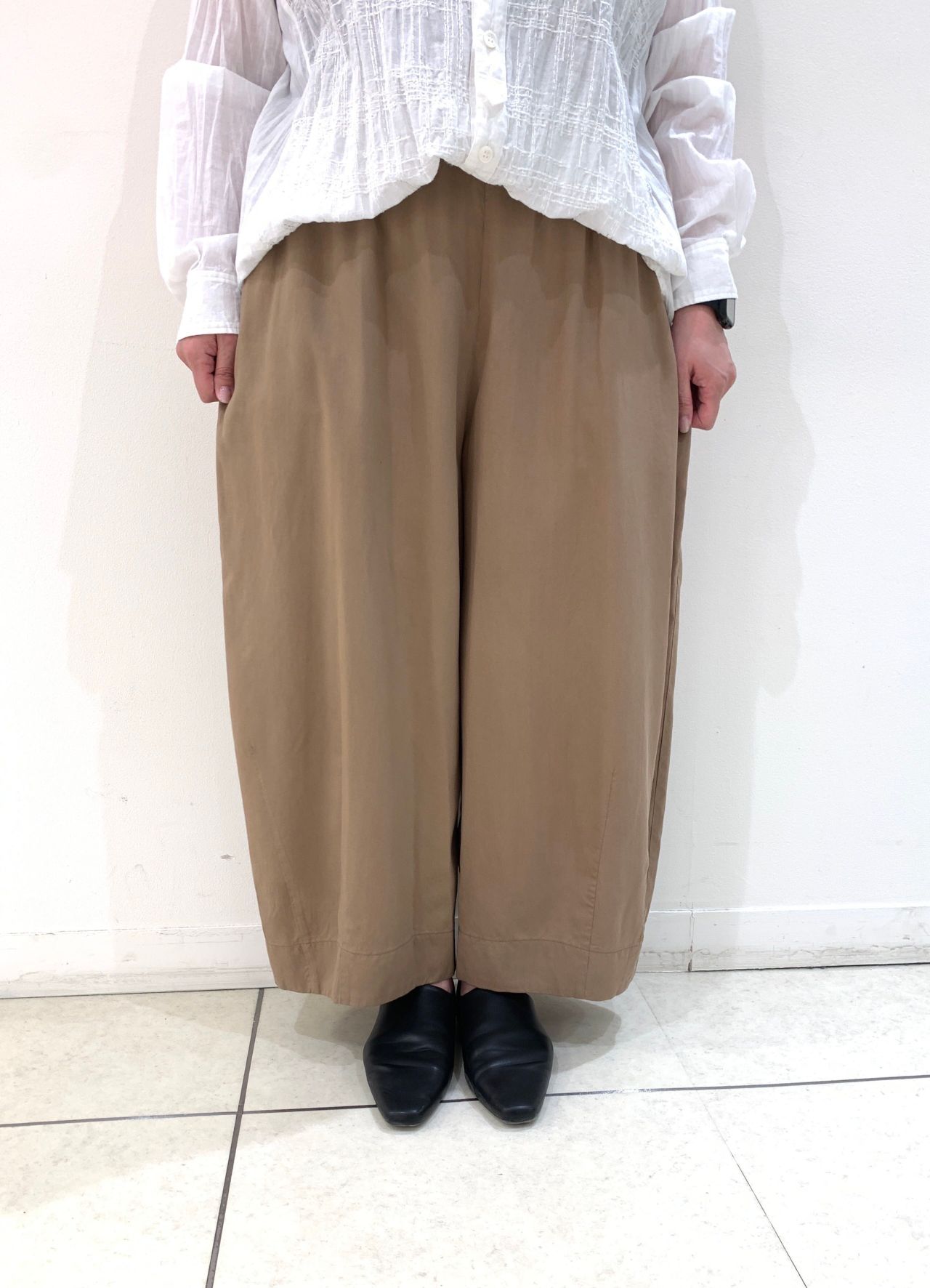 テンセルとナイロンのツイル素材のイージーパンツ。