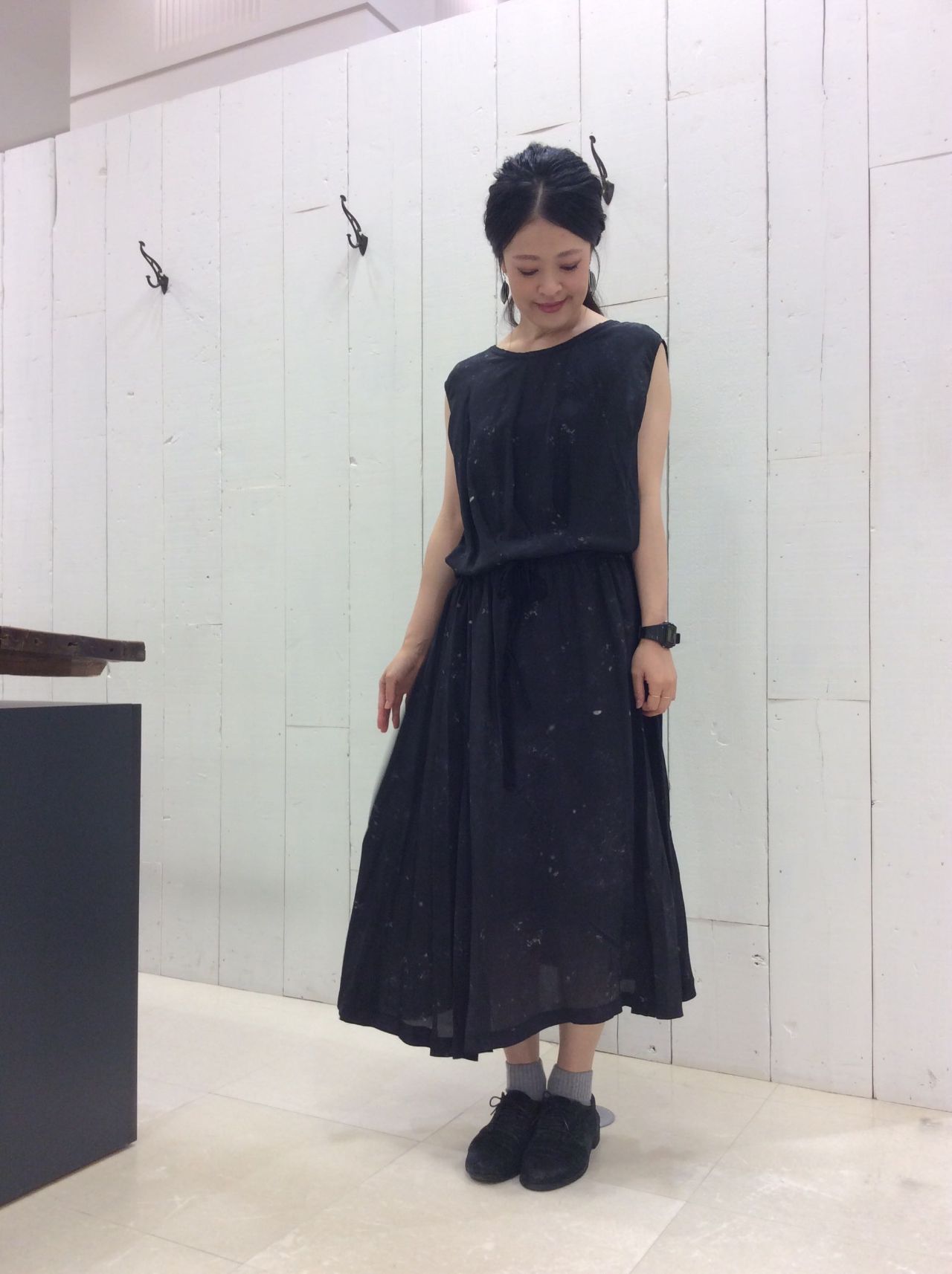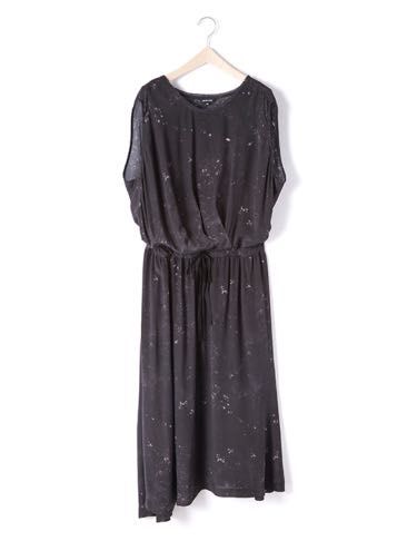裾の流れるラインがポイントのワンピース。