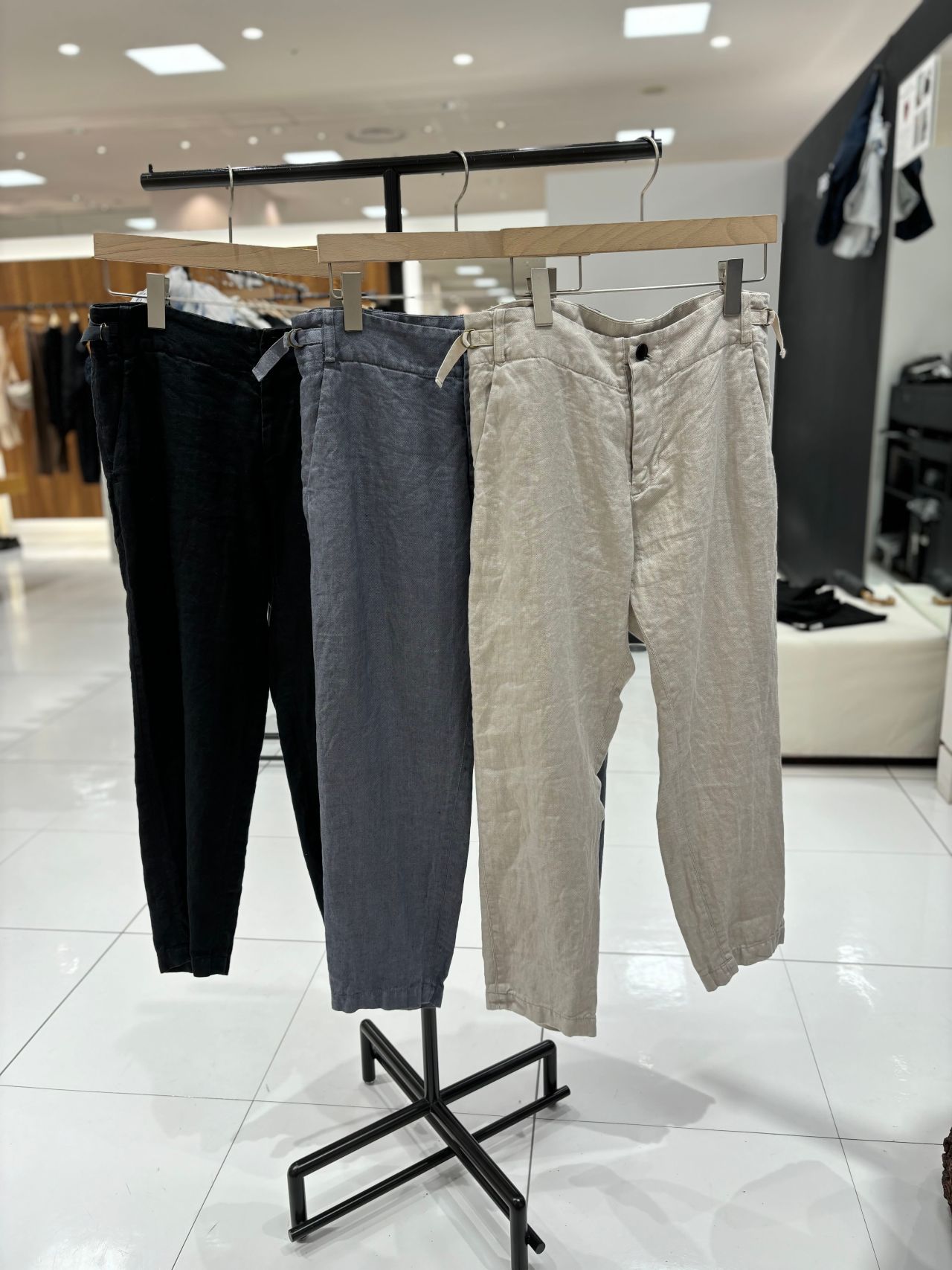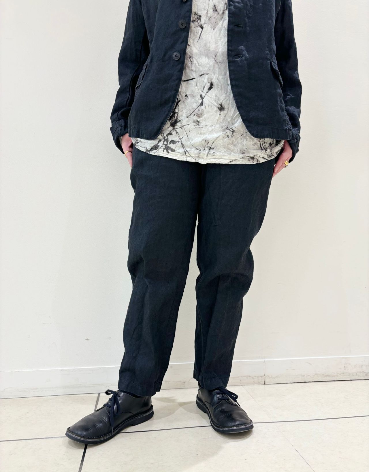 パドカレ定番のスリムパンツ。フロントボタン+ファスナーあき。