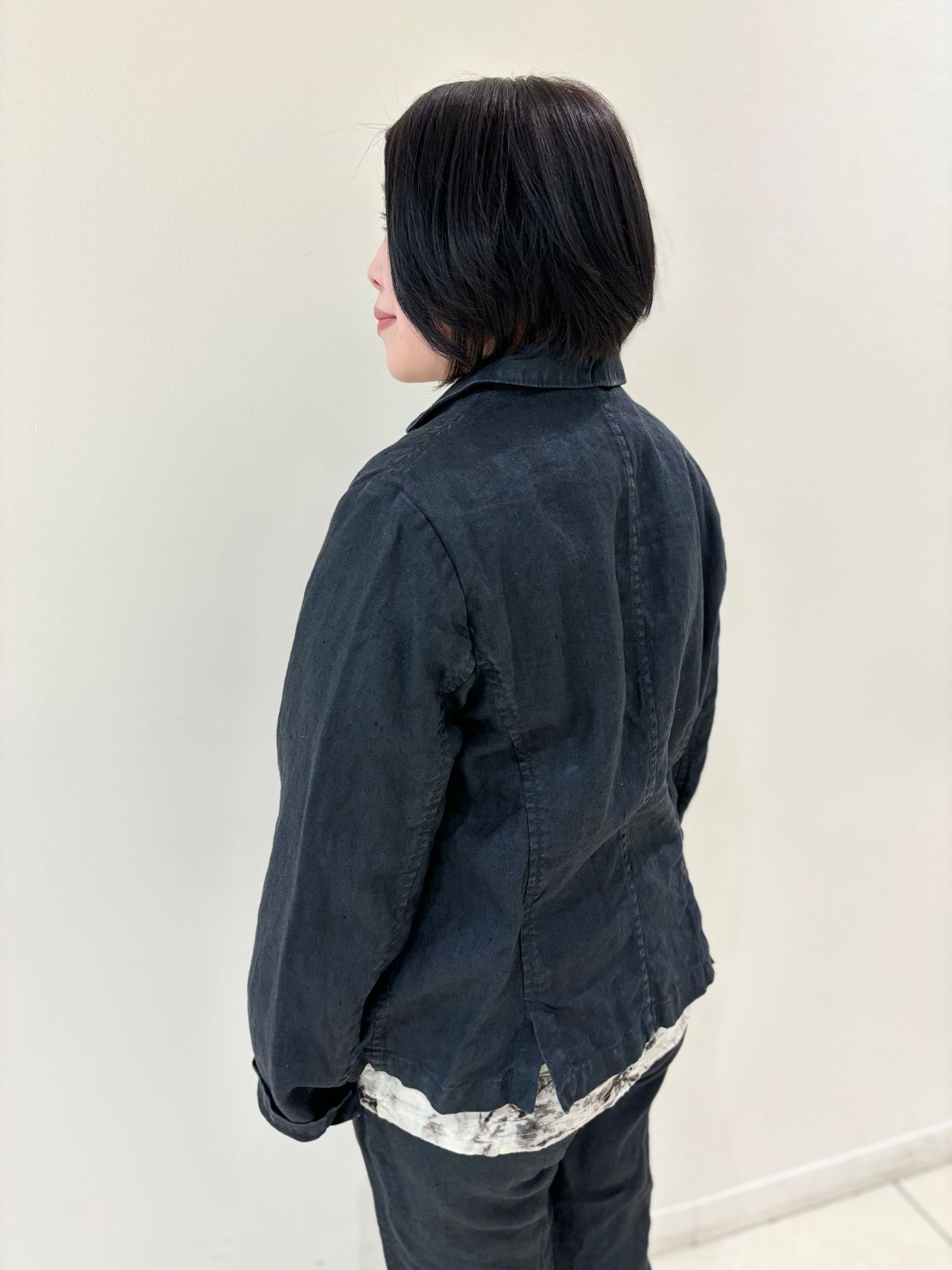 素材感、加工感と相まってカジュアル過ぎず、かしこまり過ぎない雰囲気のジャケット。