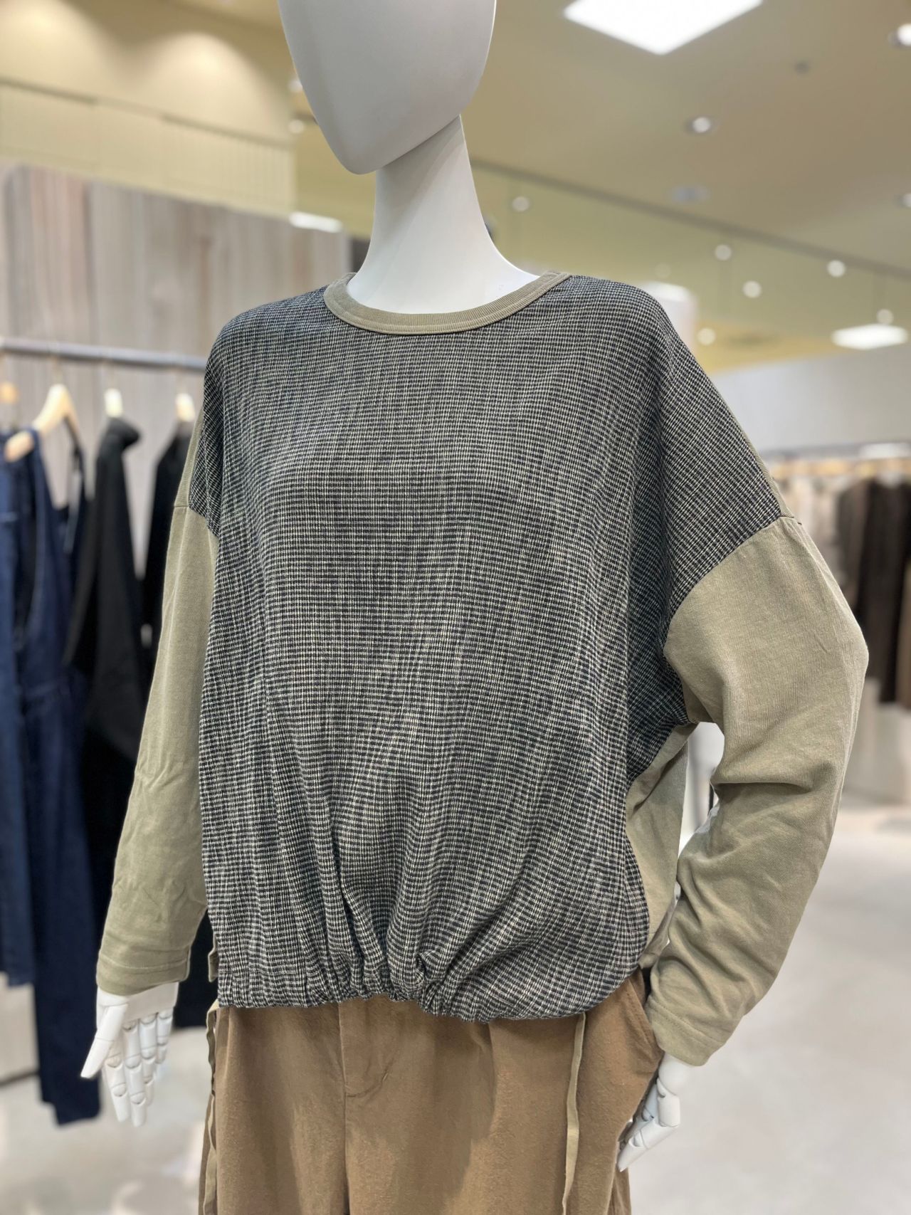 前にヒモがついていてクシュっとギャザーをよせたり伸ばしたりご自分好みにアレンジ可能です。