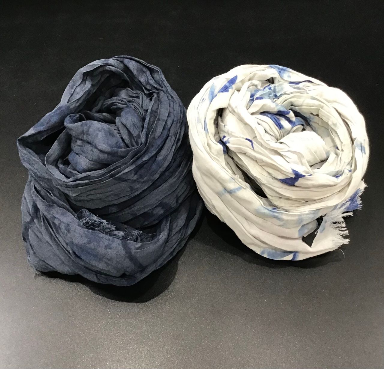 京都でプリント加工。手で絞ってシワ加工を施しました。
