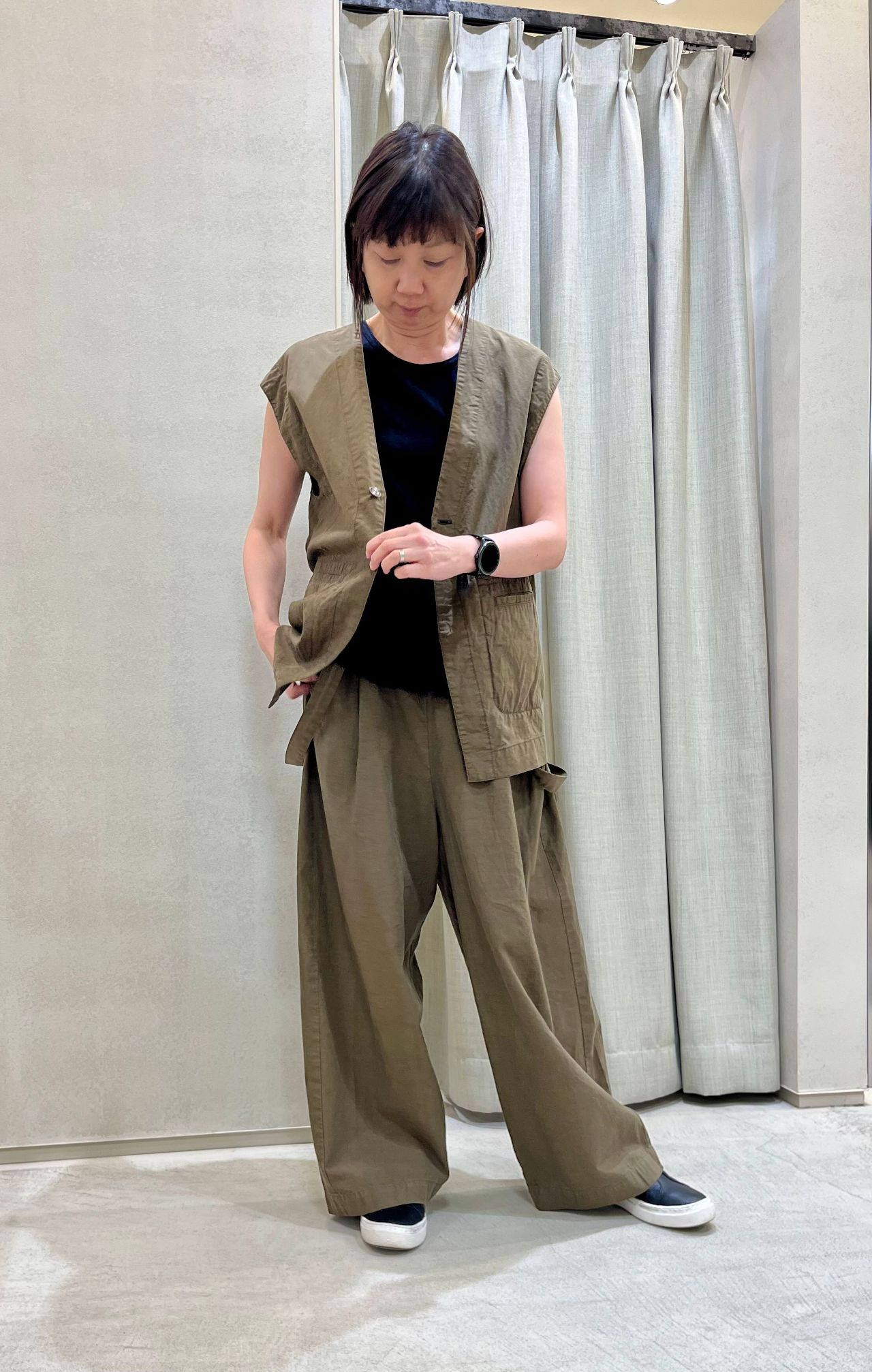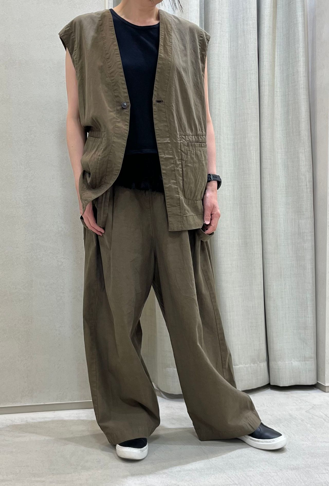 同素材コットンポプリンのジレを合わせセットアップです。