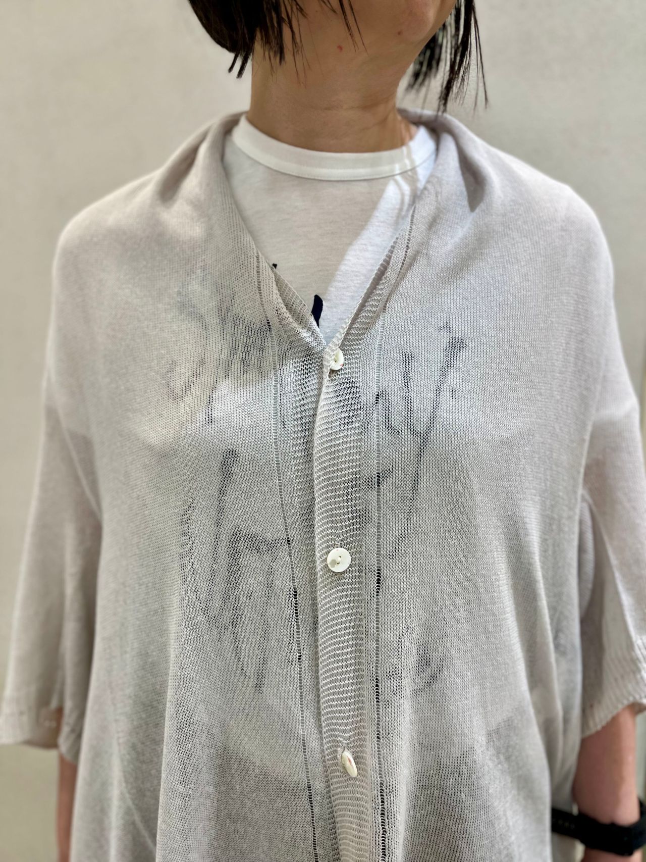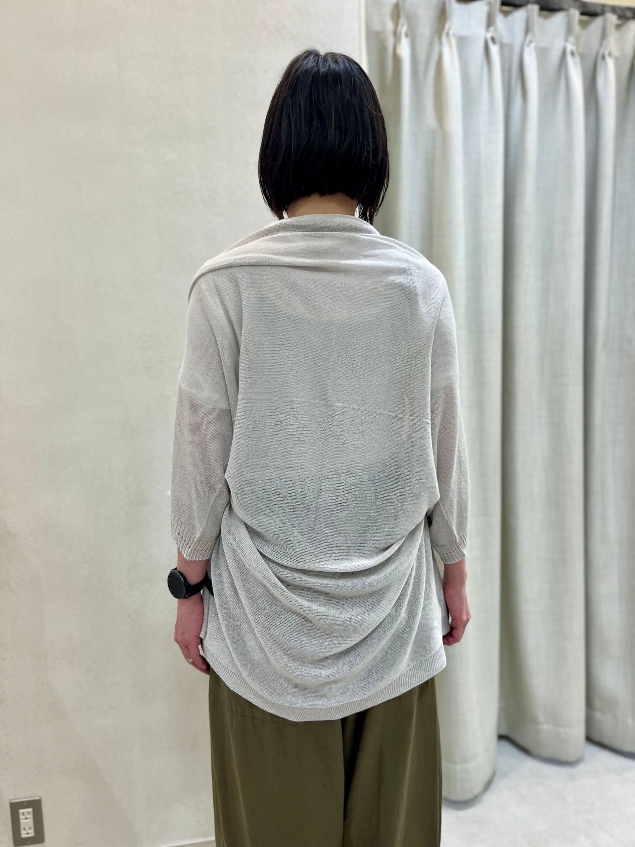 こちらのカーディガンは甘く組むことで、軽くレーシーな合いが表現された変形カーディガンです。