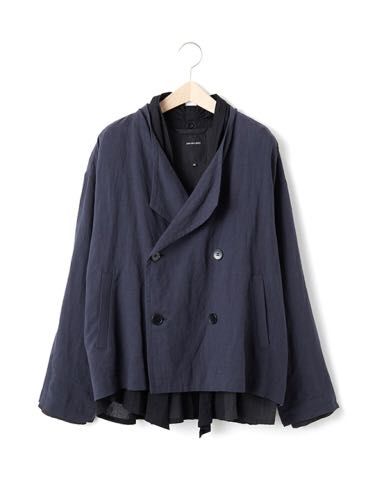 表はトレンチ風ノーカラーブルゾン、ライナーにストールの様な襟を付けています。