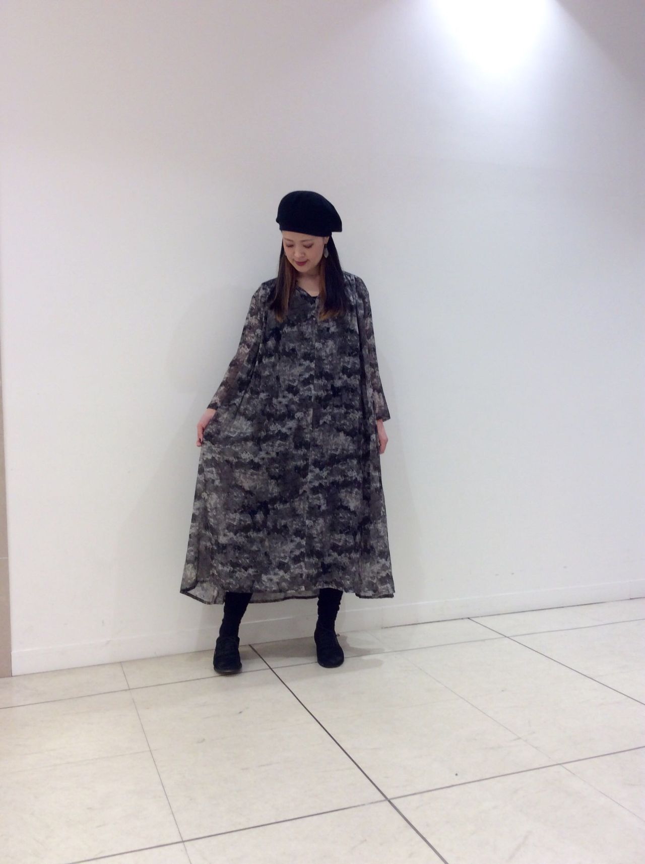 ブラッシュタッチプリント ワンピース