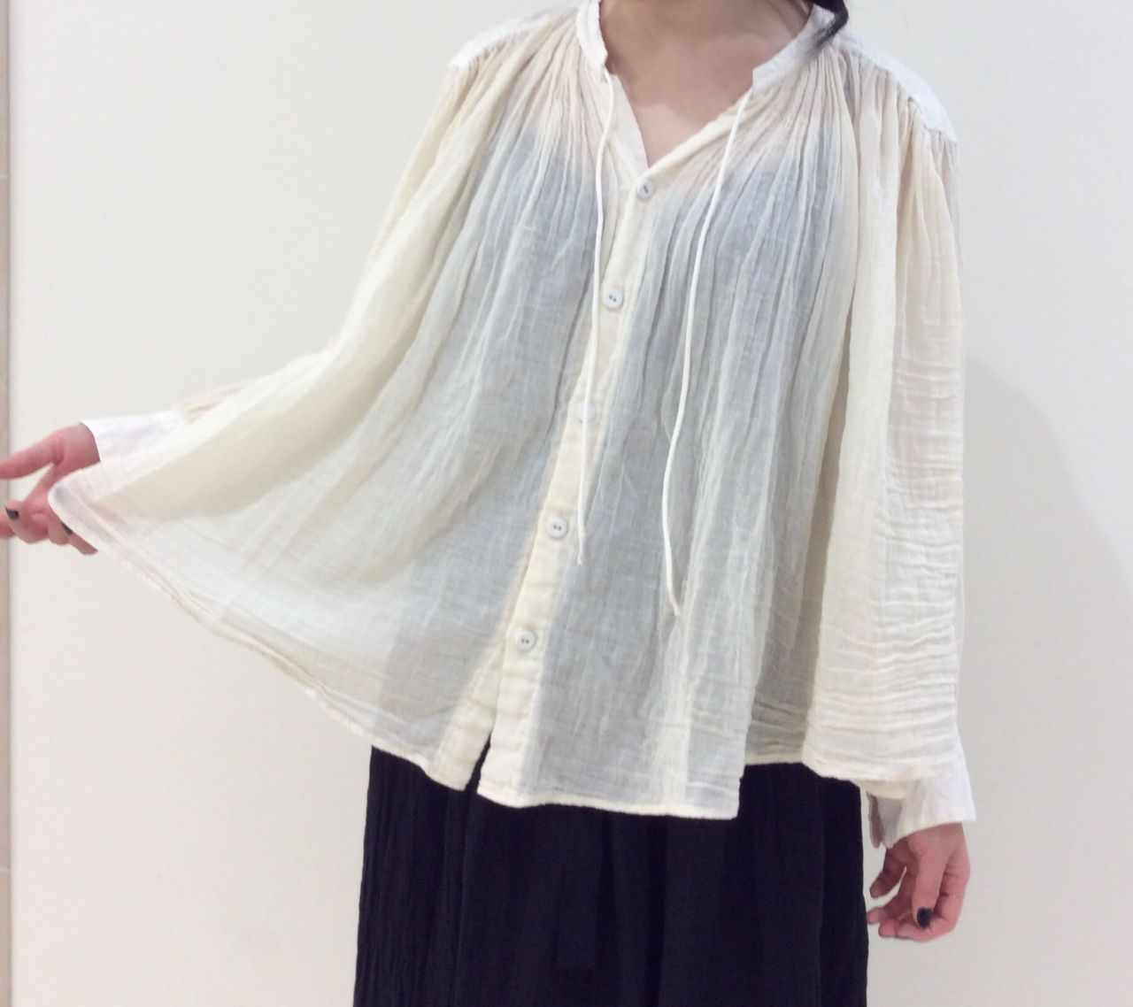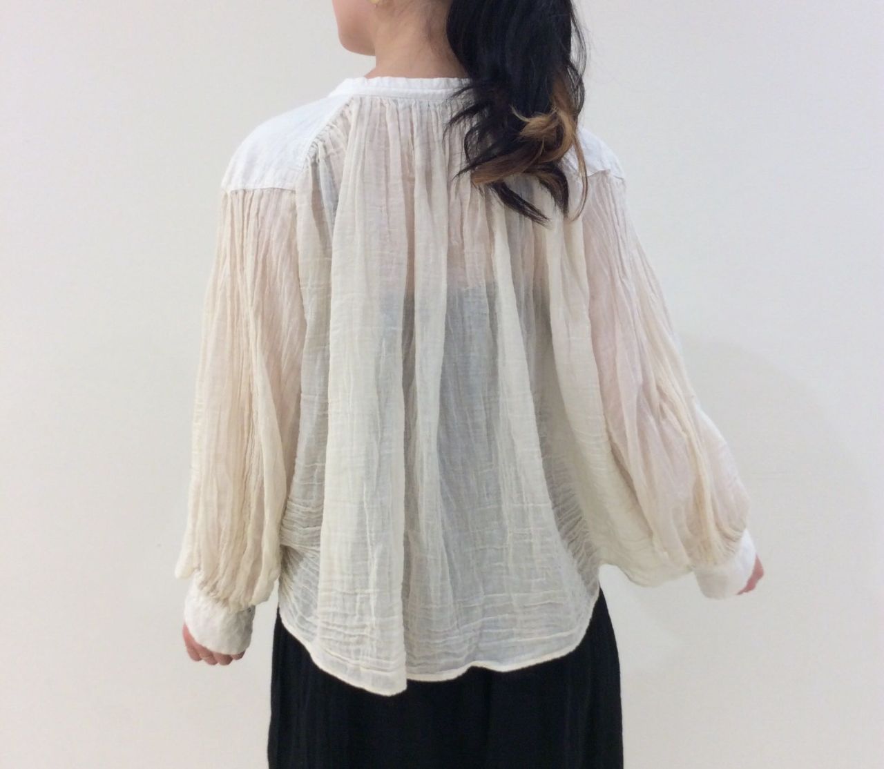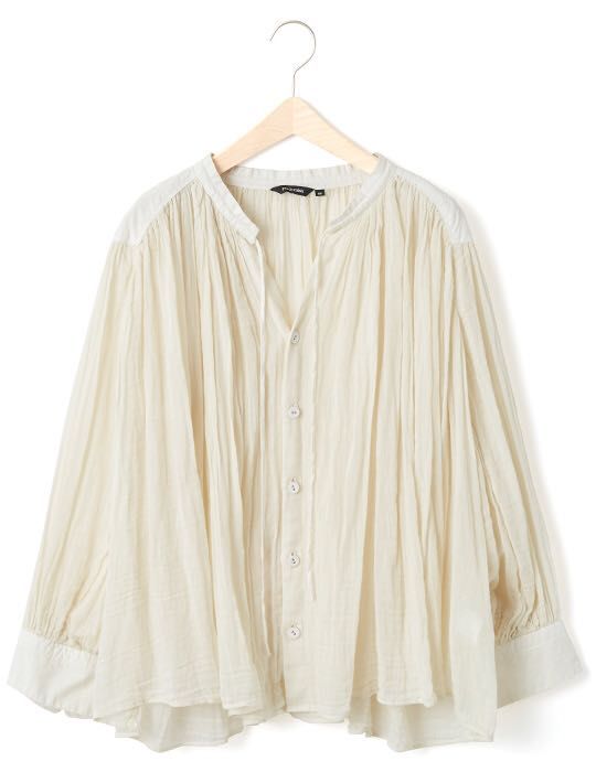 インドガーゼをメイン素材に使用した分量感ある、ギャザーブラウス。