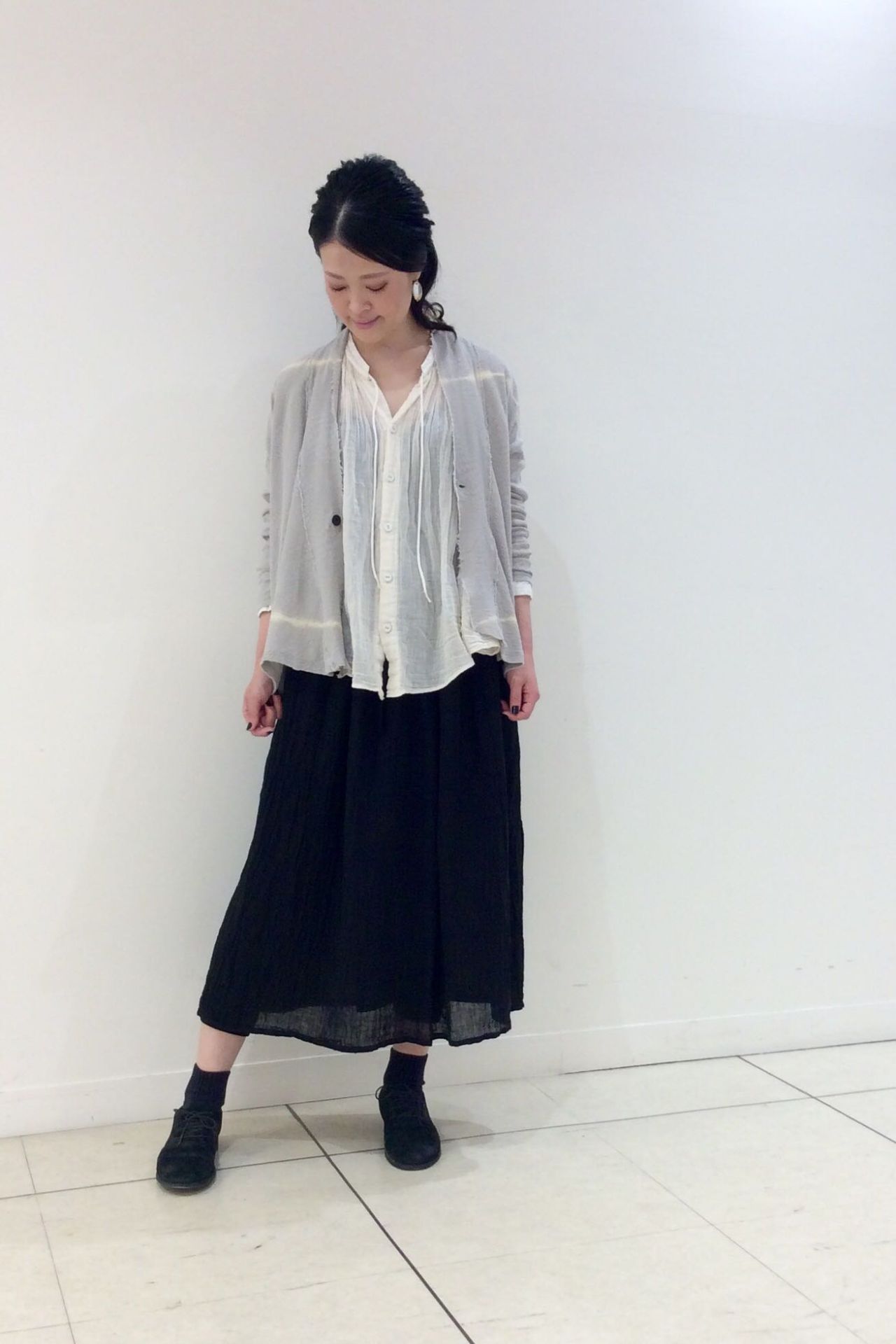 リネン先染ボイルワッシャー スカートを使ったコーディネートです。