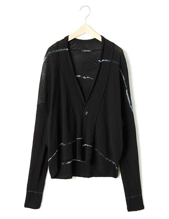 ラフに羽織っていただけるワンボタンのカーデガンに、ライン絞り染めを行いました。
