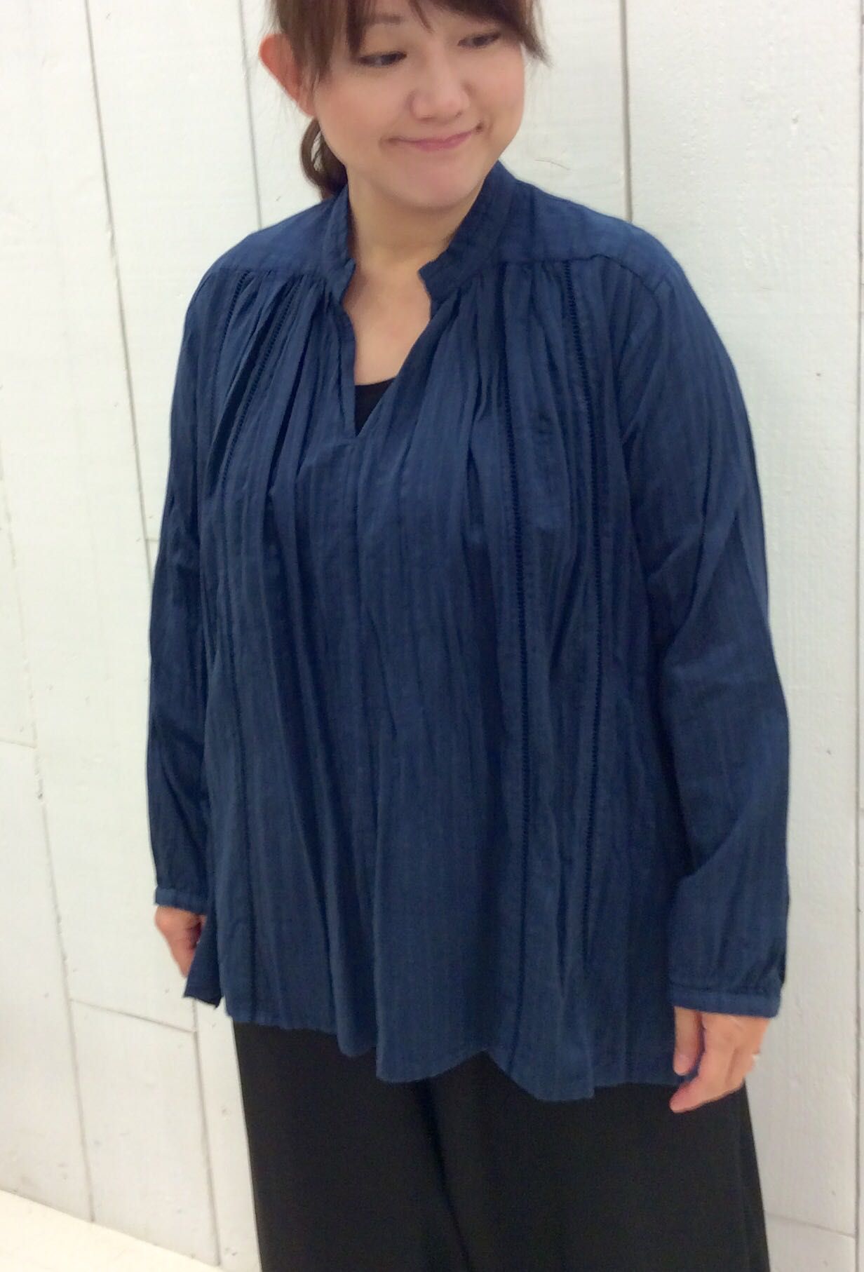 コットンが入ったブラウスは薄手ながら暖かく着ていただけます。