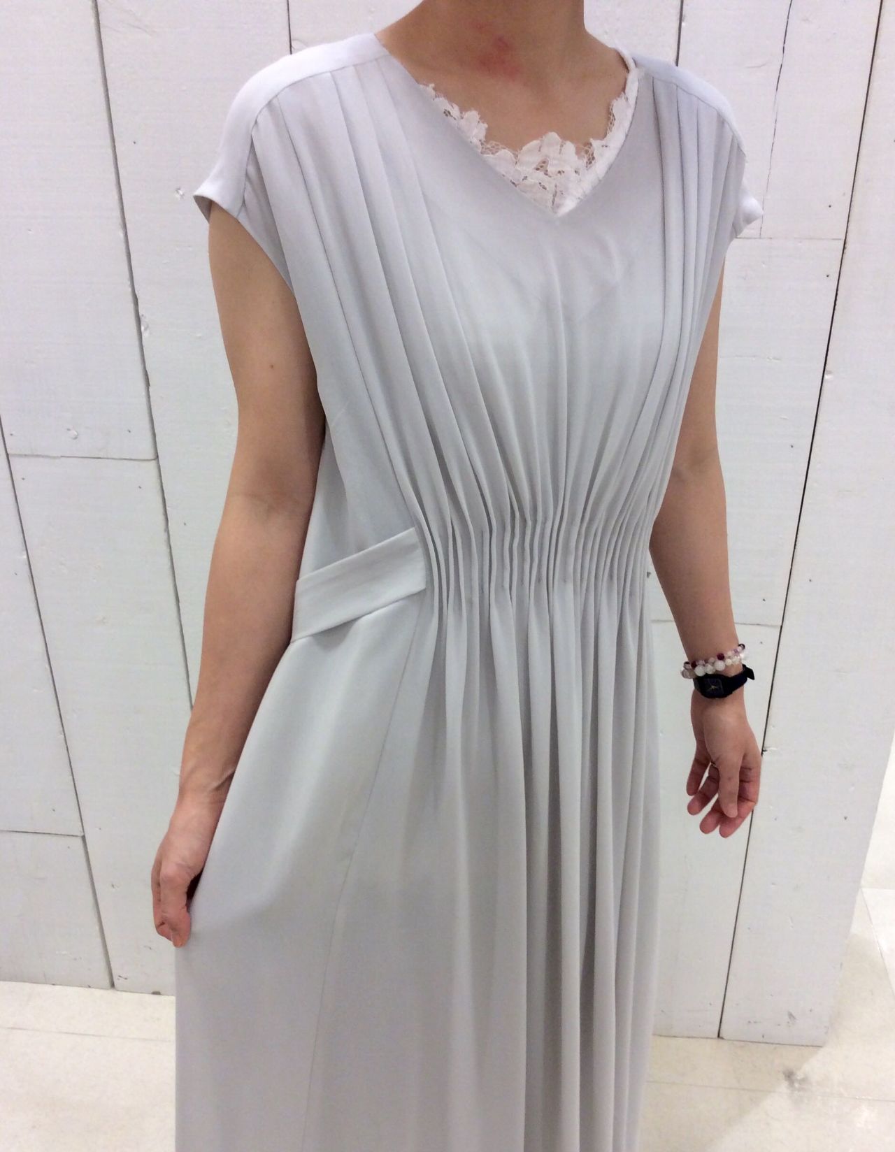 タテ型つまみタックのデザインワンピース。