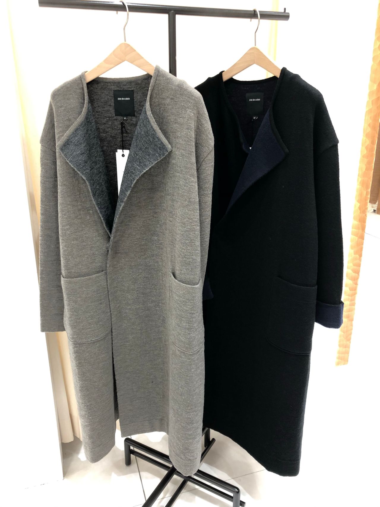 世界で一番細いブークレを表裏接結編みにして、しっかりとさせたニットコート地に仕立ててあります。