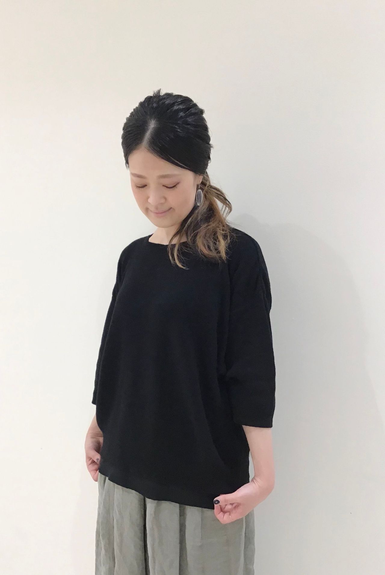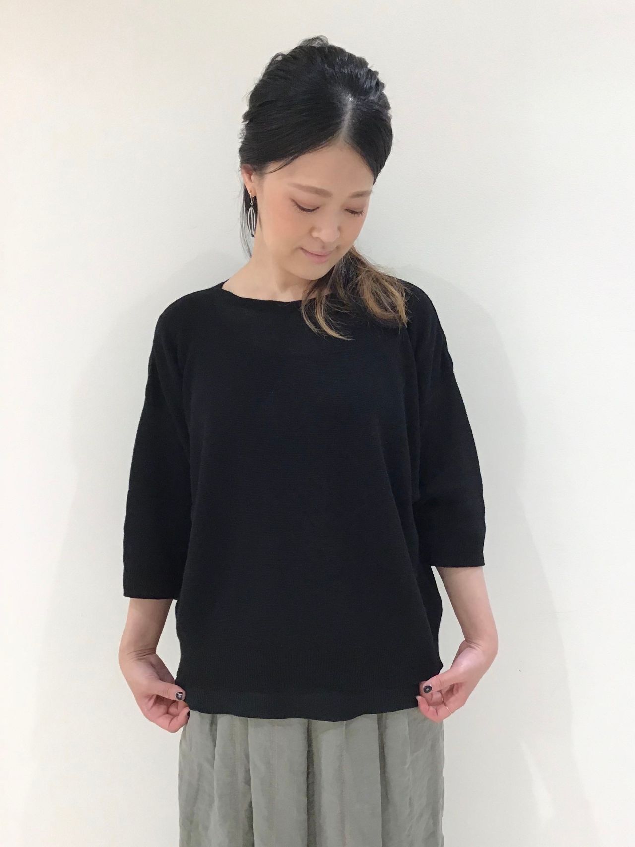 程よい透け感があり暑い日にも爽やかに着ていただけますし、落ち感のある素材でスッキリした着心地なので細見え効果があるのが嬉しい1枚です。