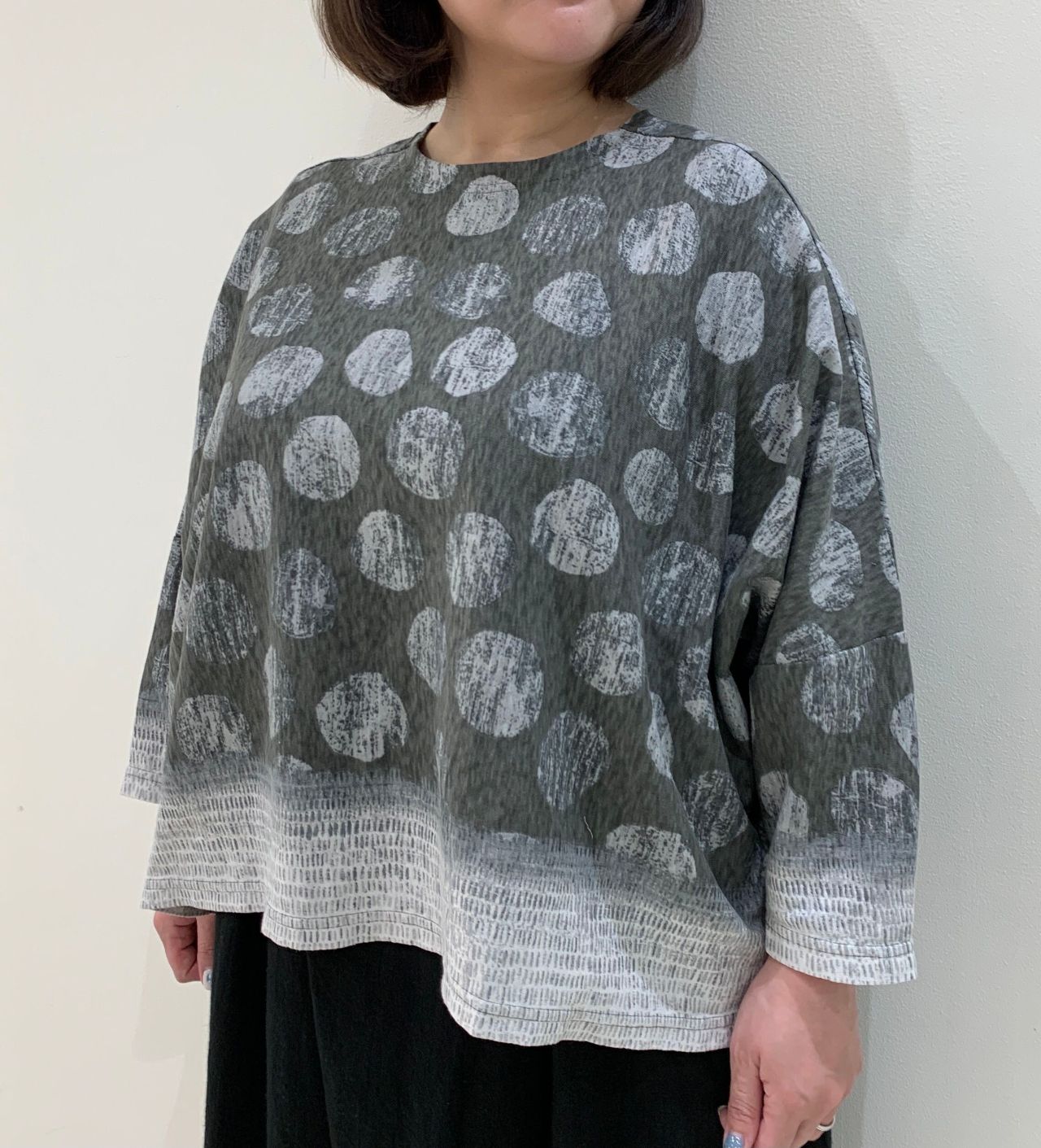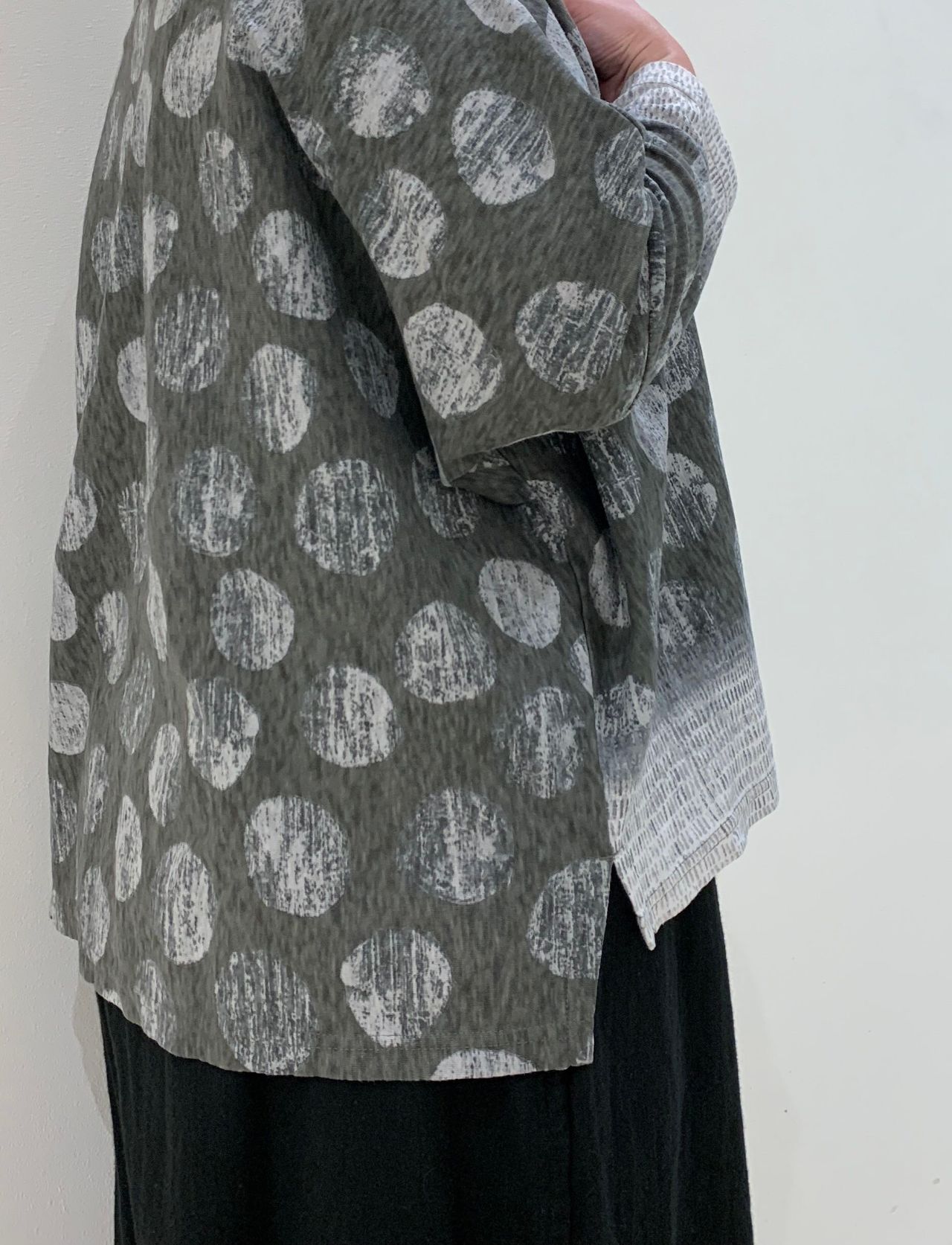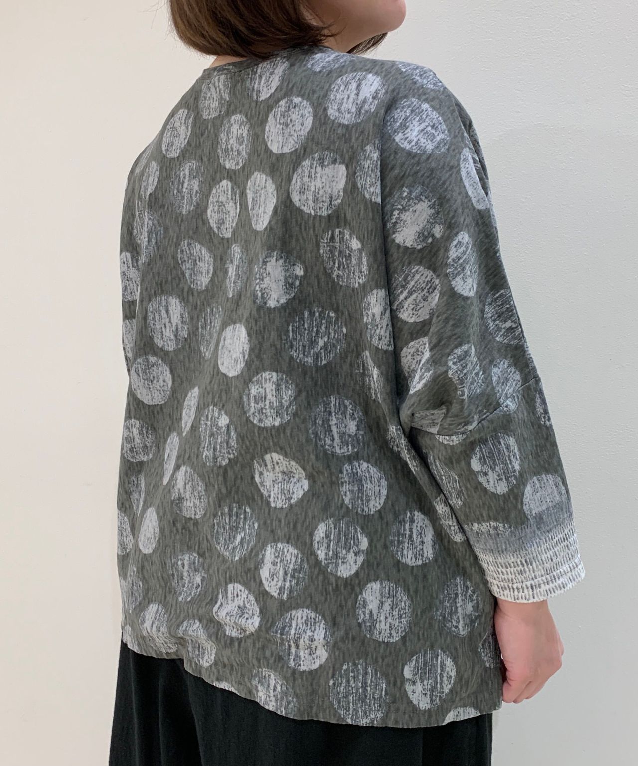ドルマンスリーブで袖周りもゆとりがあるので、リラックスして着て頂けます。