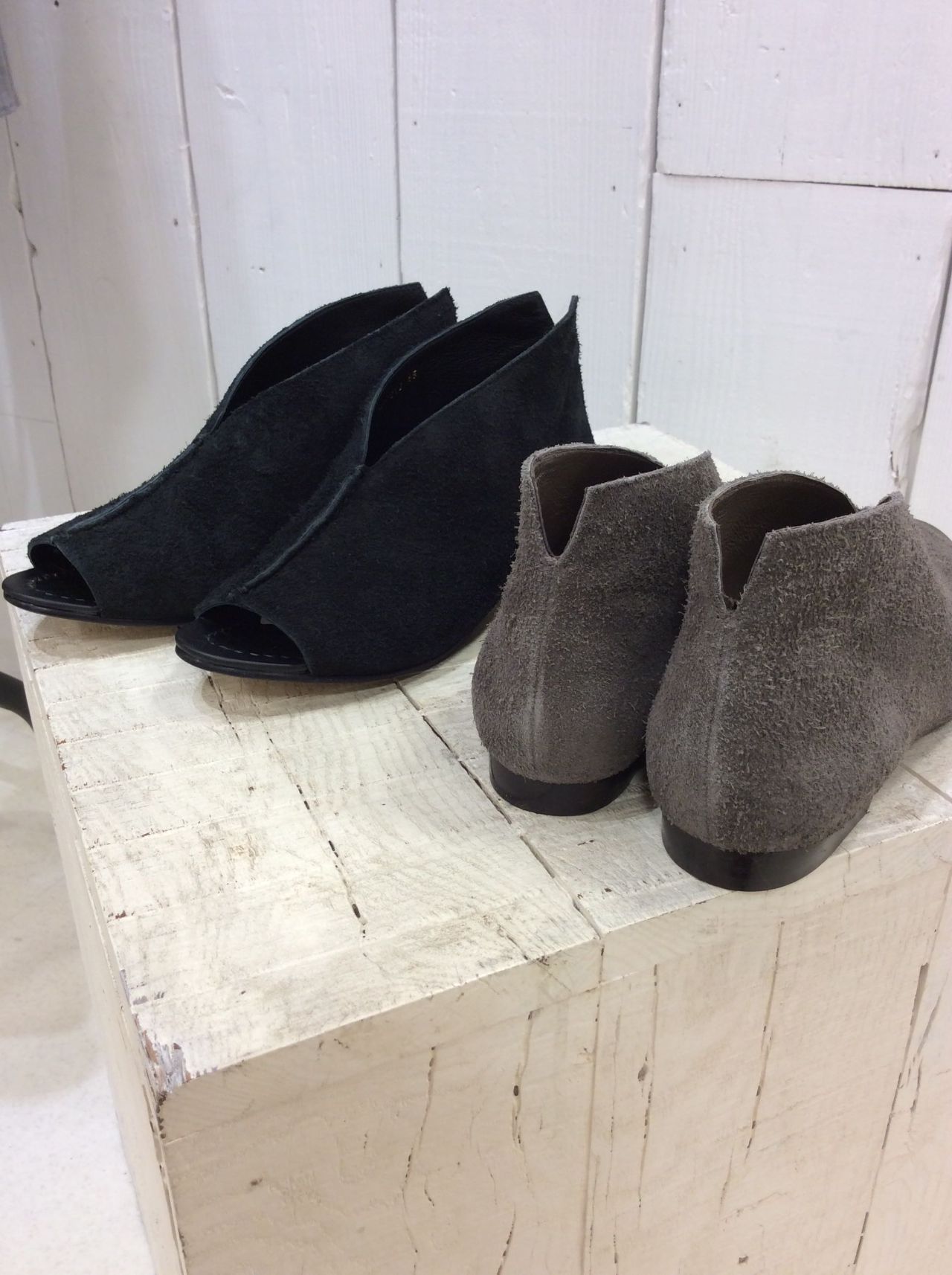 一度靴にした後洗いをかけ、木型に入れて成型した後にバフ加工で起毛部分を寝かせ、艶が出るように加工している。