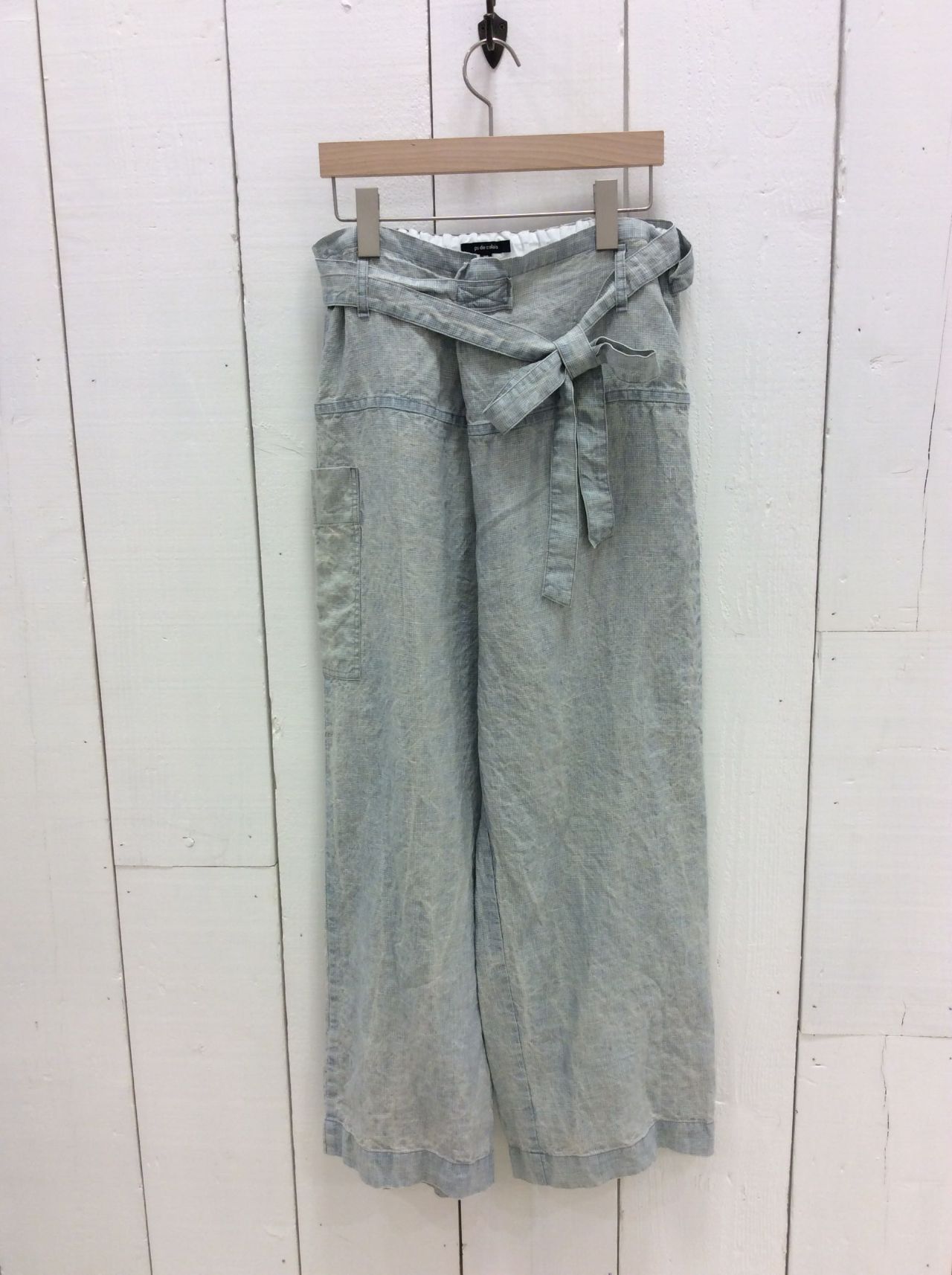 リネンの先染めを織り上げた生地を、さらにインディゴで後染めした素材。製品洗いを施すことにより、リネンの素材感とインディゴの色落ち感が楽しめます。