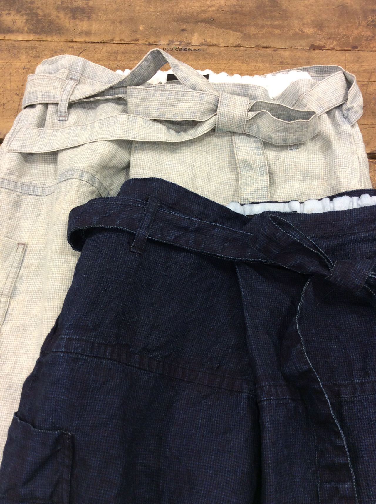 先染めリネンインディゴギンガムパンツ no.8400 colインディゴ(着用)/アイスブルーsize36¥24,840