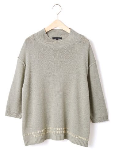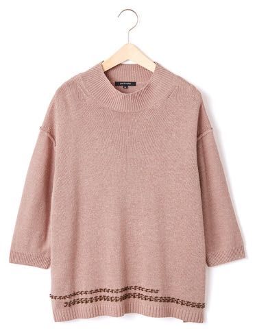 リラックス感ある、柔らかな色のニットプルオーバー。