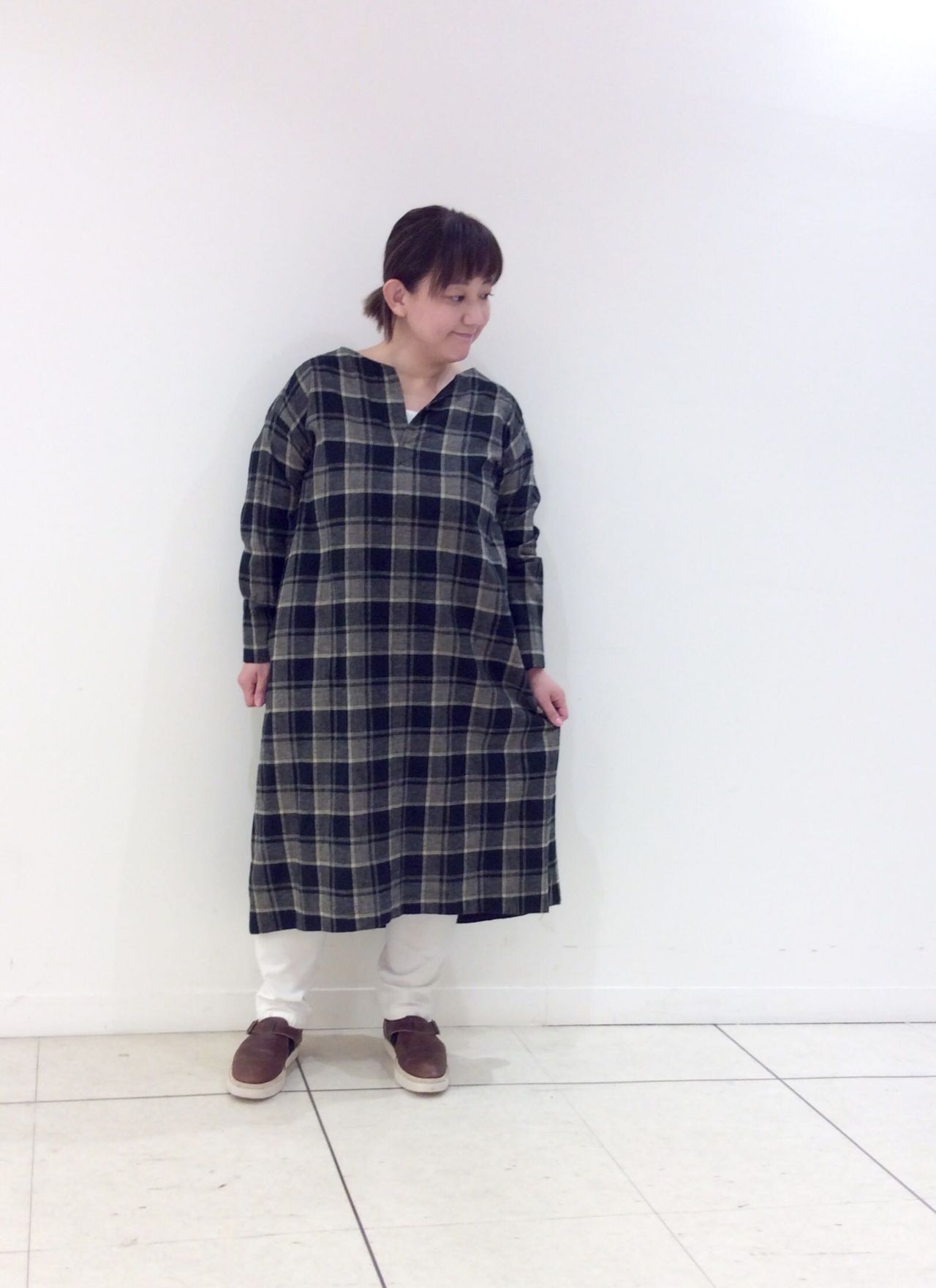 1枚でバサッと着ていただけるゆったりしたシルエットなので、冬はタートルネックを重ねた着こなしも。下にパンツやロングスカートの重ね着もおすすめです。