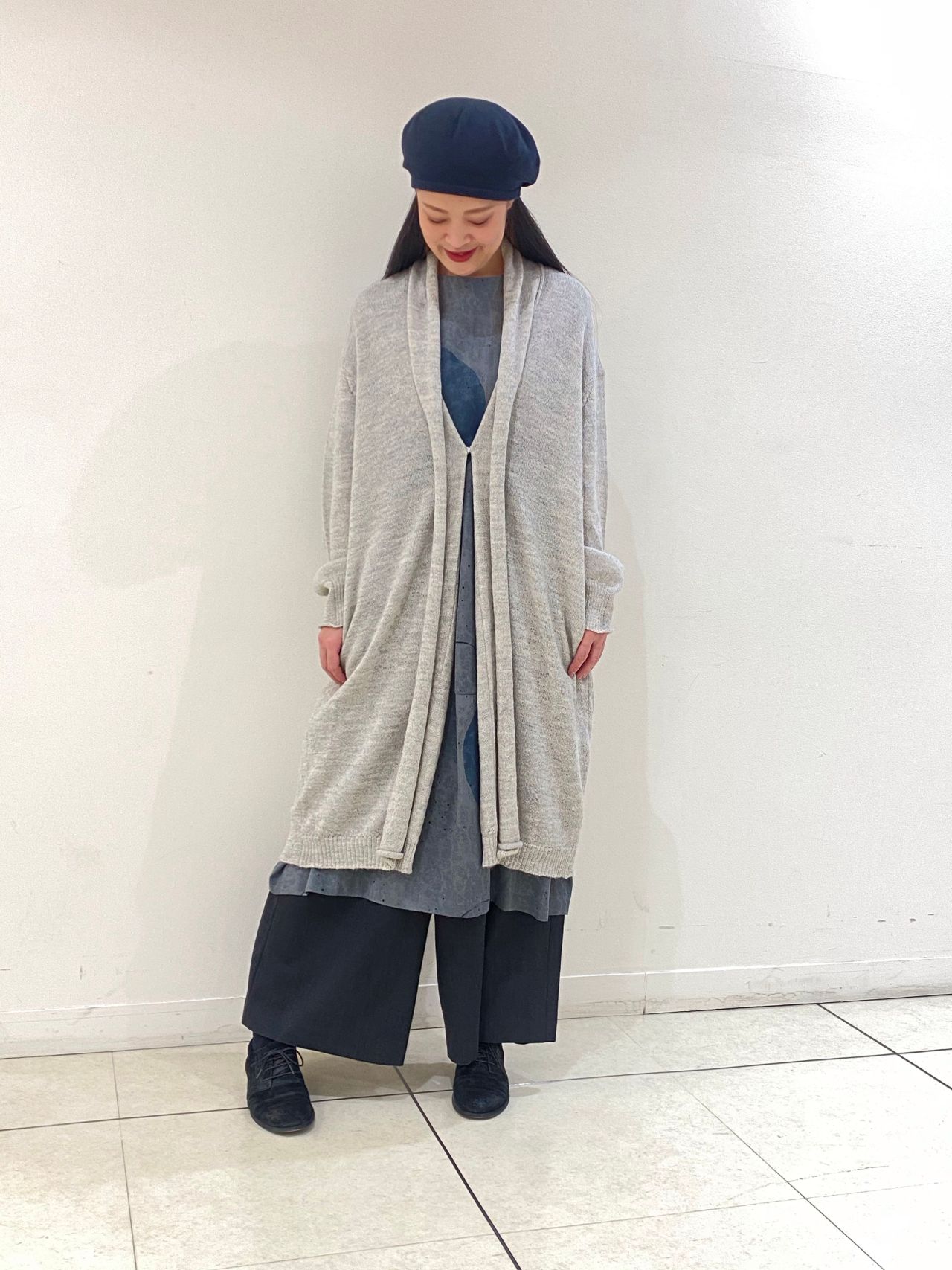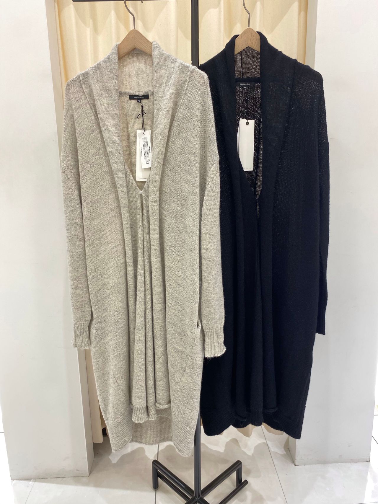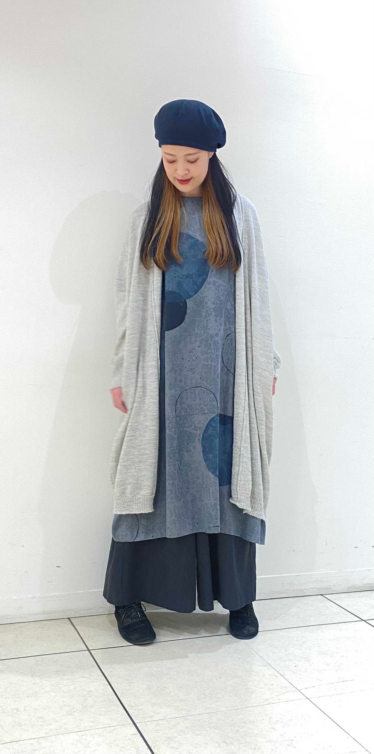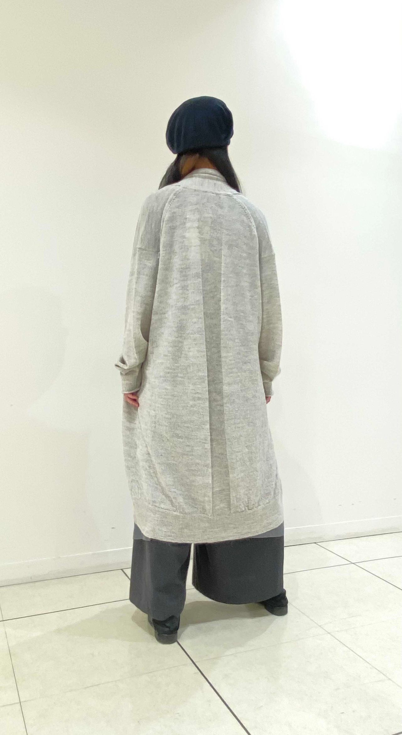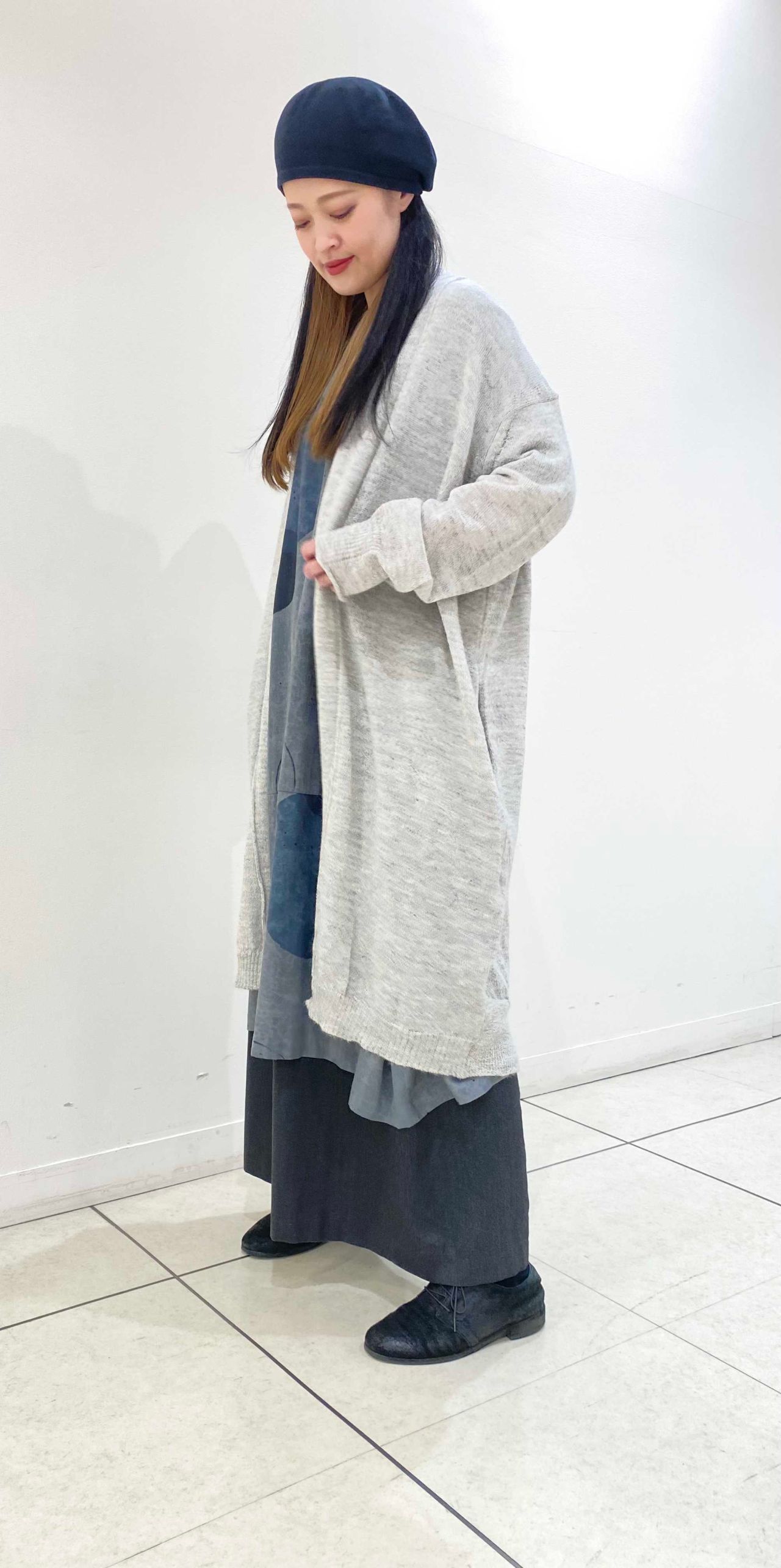 長めの着丈と襟がストールを巻いているかの様なデザインがポイントになります。