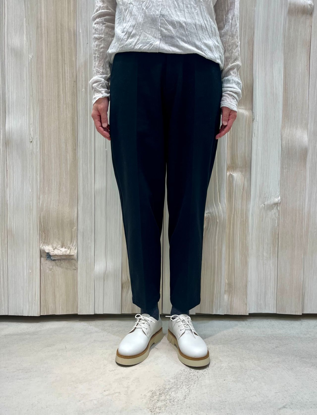 美しいシルエットで脚をすっきりと見せるセンタープレスのテーパードパンツです。