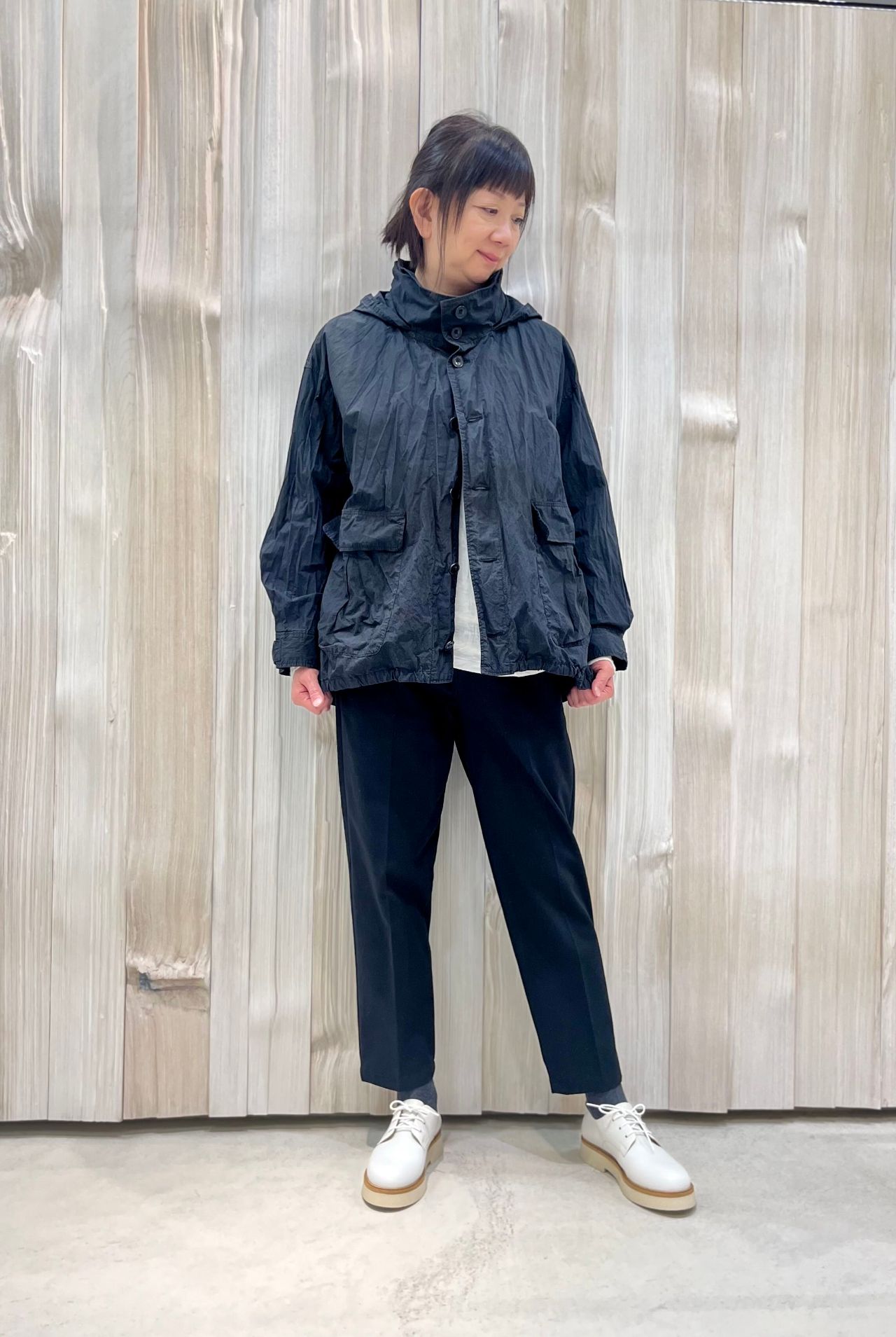 製品洗いでナチュラルさを出しつつセンタープレスを入れてきちんと感をプラスしました。