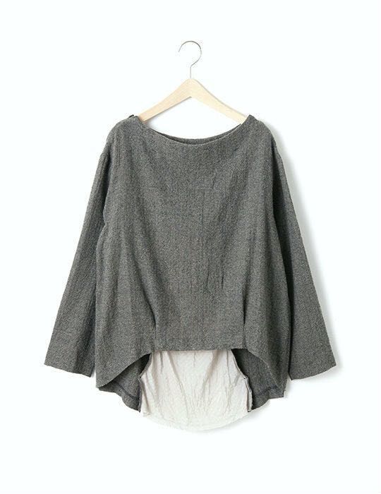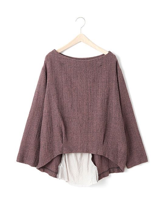 すっきりとした襟ぐりなのでタートルやシャツをインナーに重ね着しやすいデザインになっております。