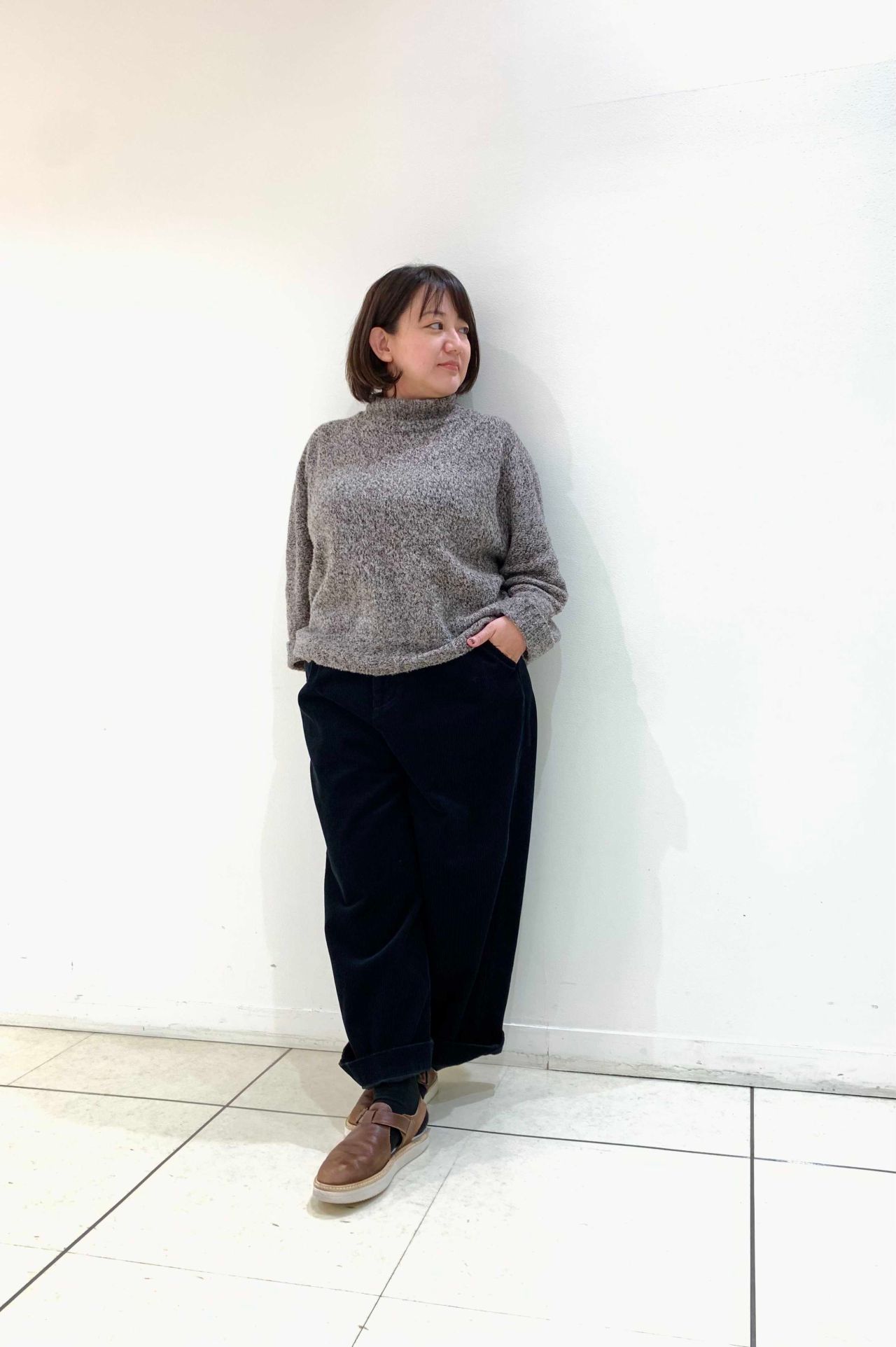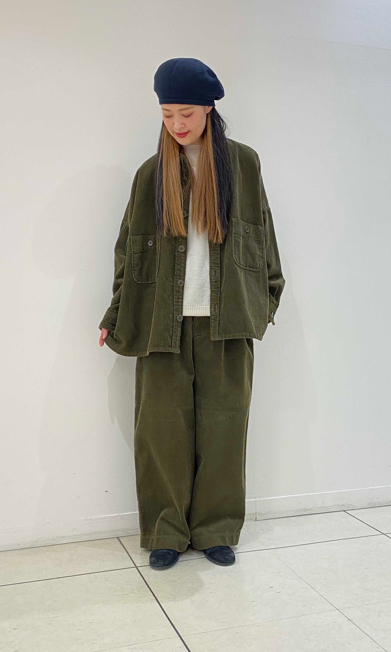少し短めの丈感なので、ワイドパンツやスカートと合わせやすく、コーディネートの幅が広がります。