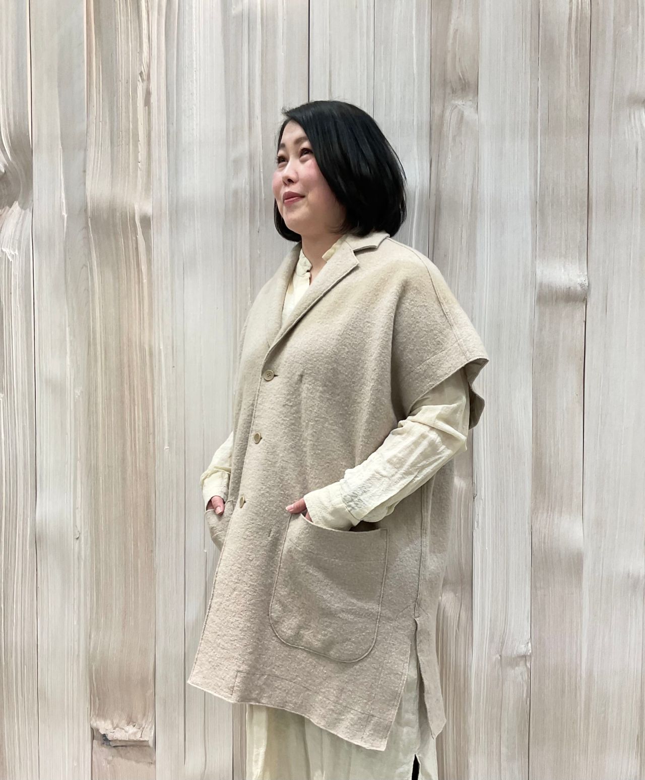 テーラードカラーのジレ。