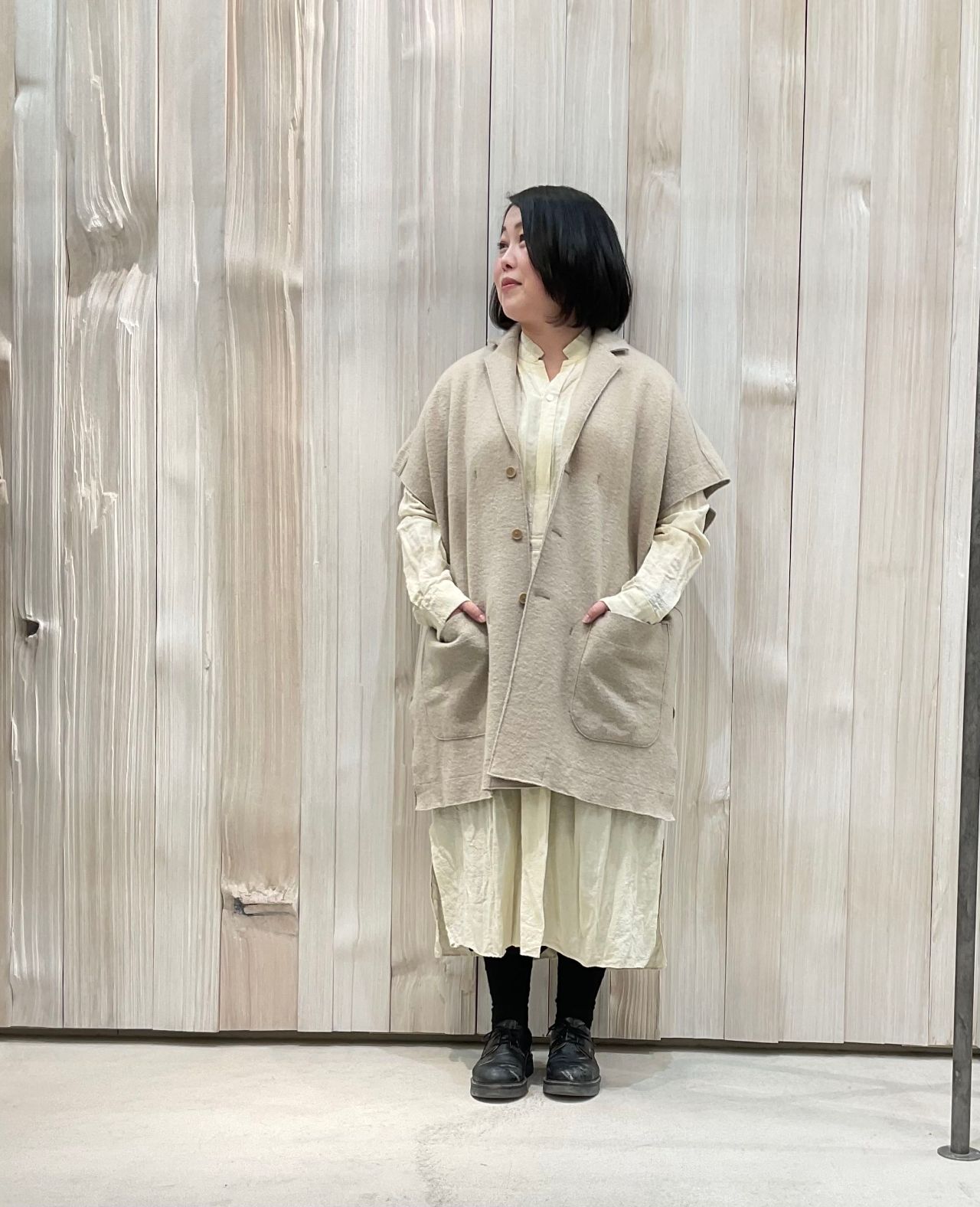 羽織るだけでいつもと違うレイヤードコーデに仕上がるのが、ジレの魅力。