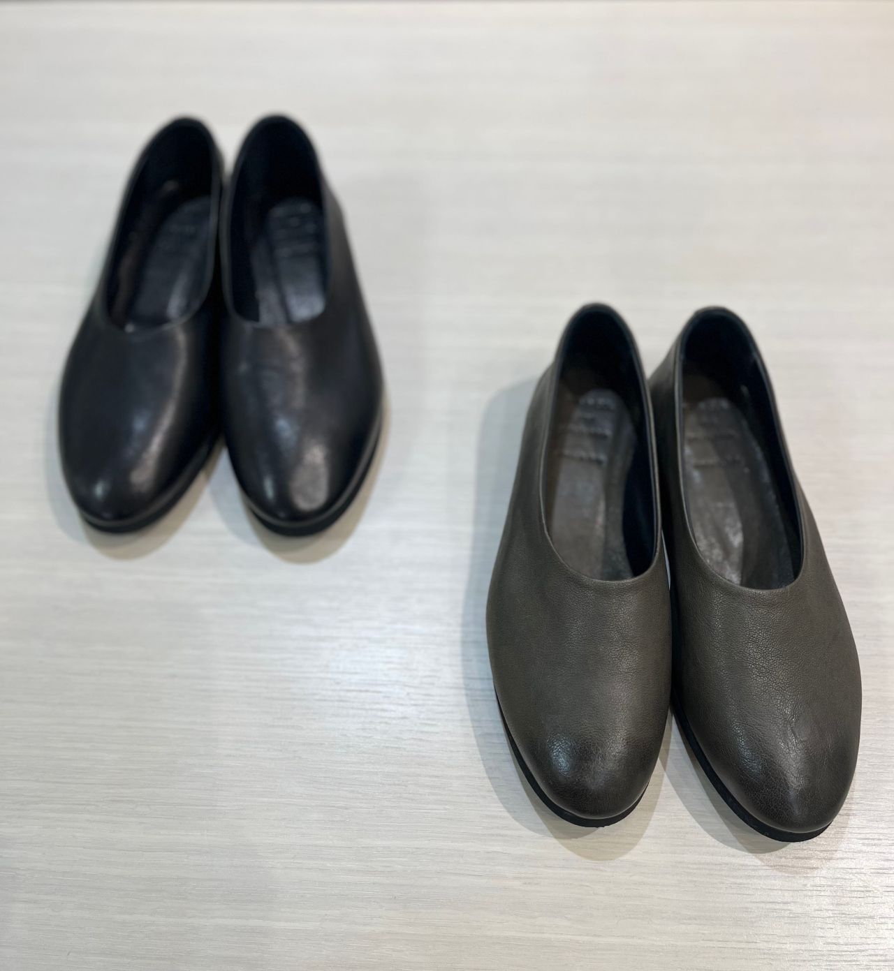 本来、靴作りで欠かせないトゥパフ(靴のつま先部分にある芯材)と、バックカウンター(靴のかかと部分に挿入されている半円の芯材)を使用しないことで、足に靴の硬さや圧迫感を与えず、ダンスシューズのように歩行時にリラックスできる履き心地に。