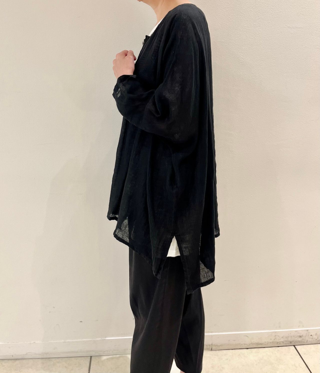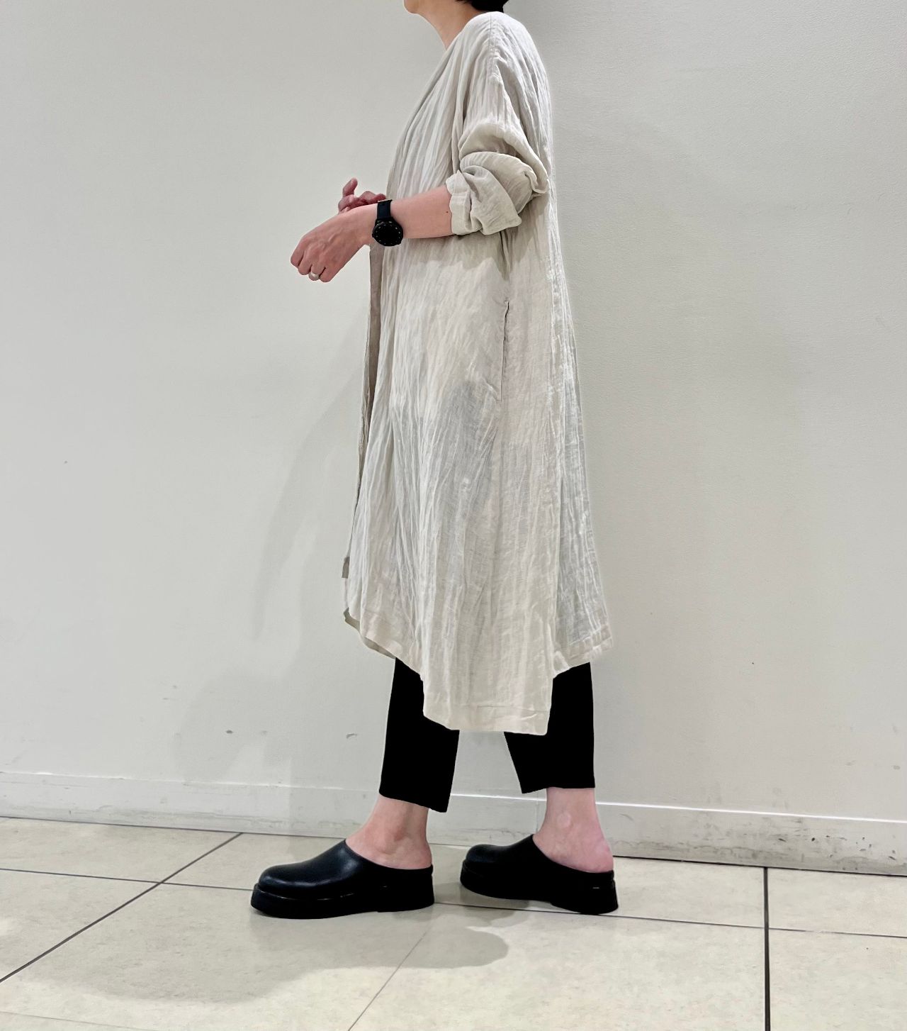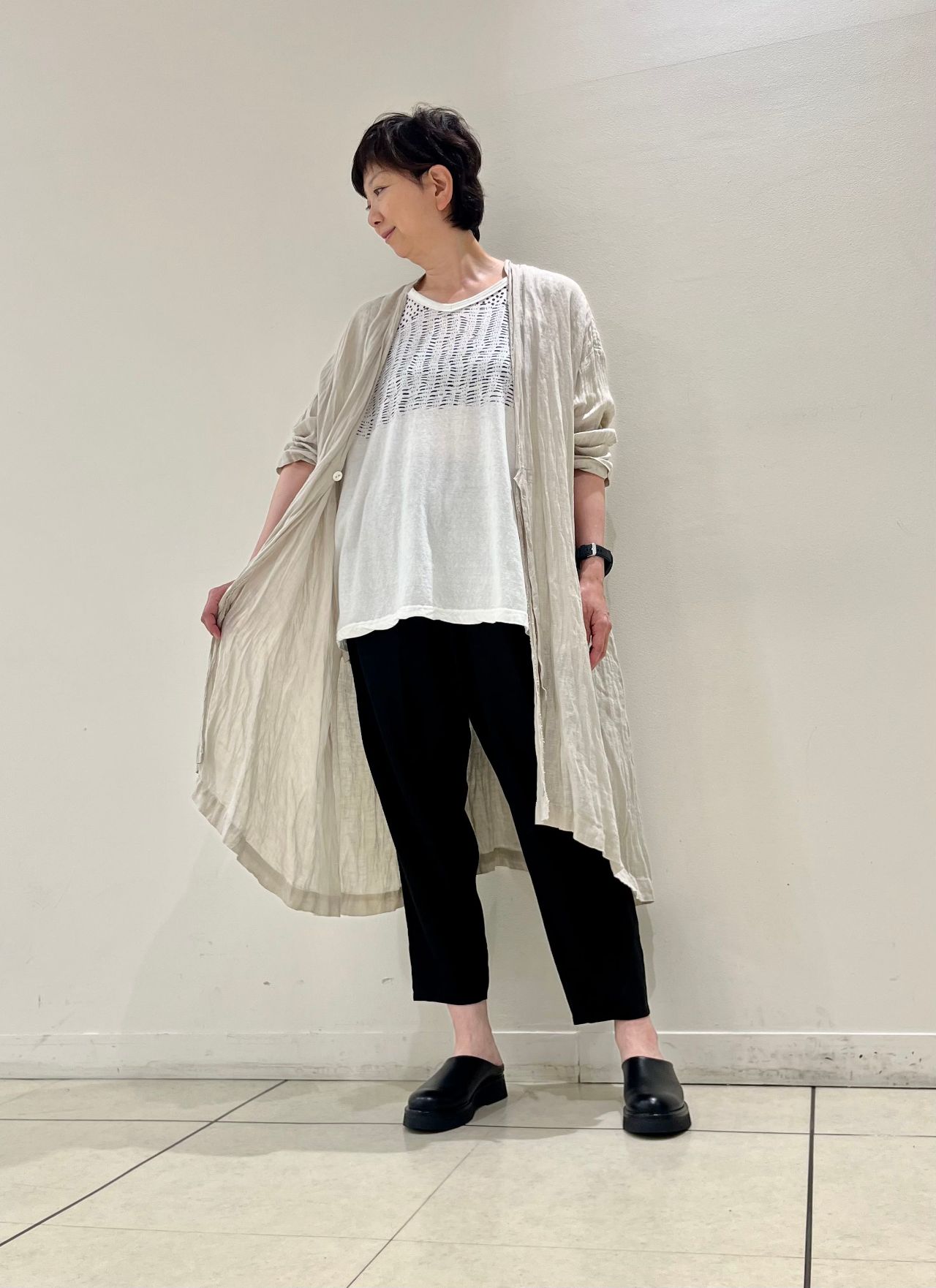 カーディガンのように羽織りに使えるAラインシルエットです。
