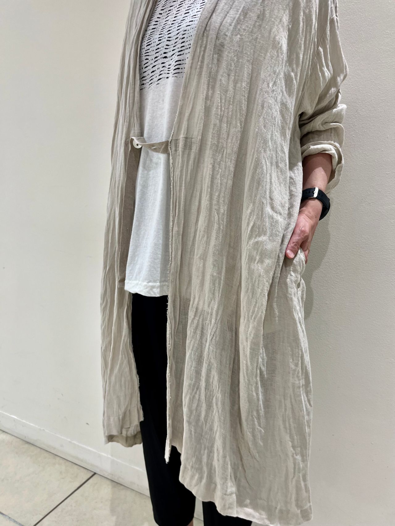 滋賀県の琵琶湖に近い老舗加工場でちりめん調に解撚しながら仕上げたリネンボイル織物。