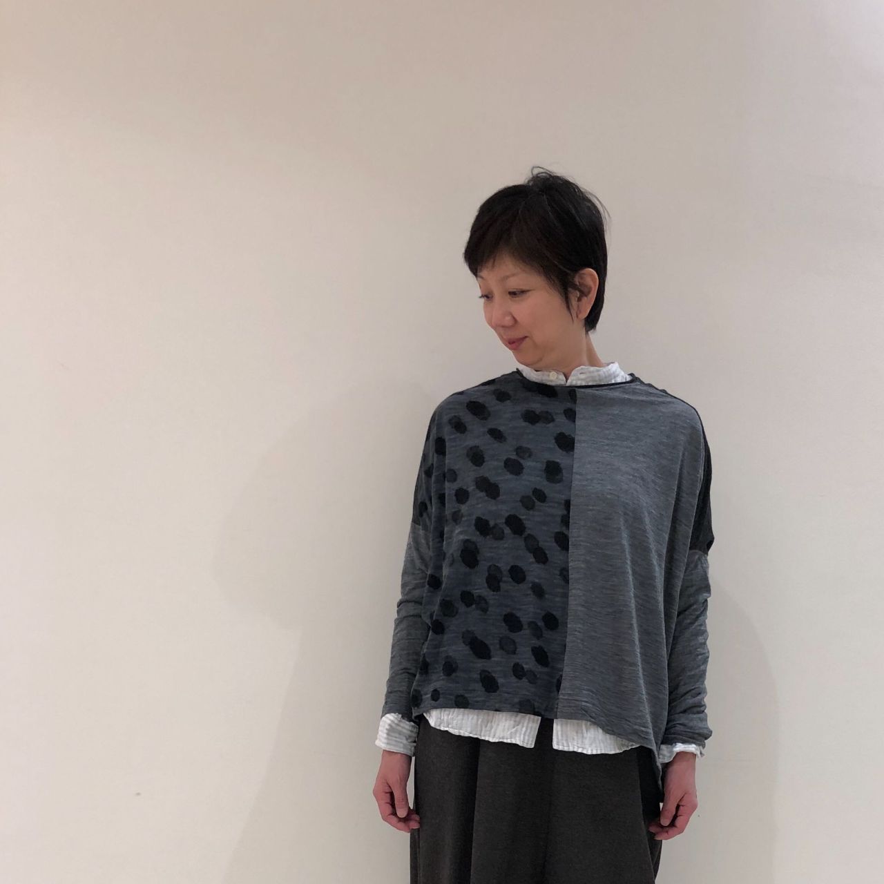 それでは、今日のリレーは廣田が紹介したドットプリントプルオーバーを使ってコーディネートしました。