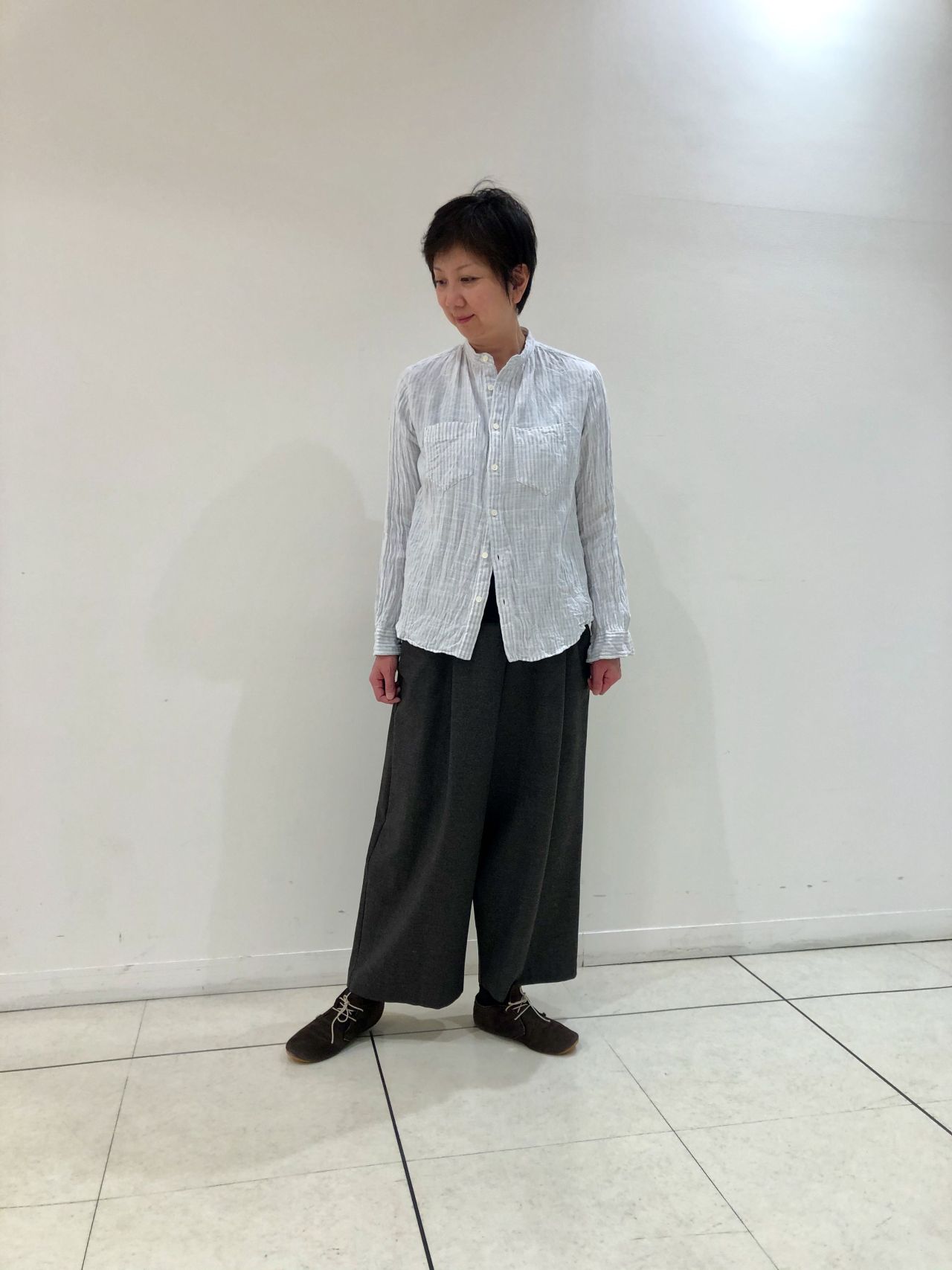 シャツを下に1枚着てサルエルパンツを合わせ、重ね着がお好きな方へと思いました。