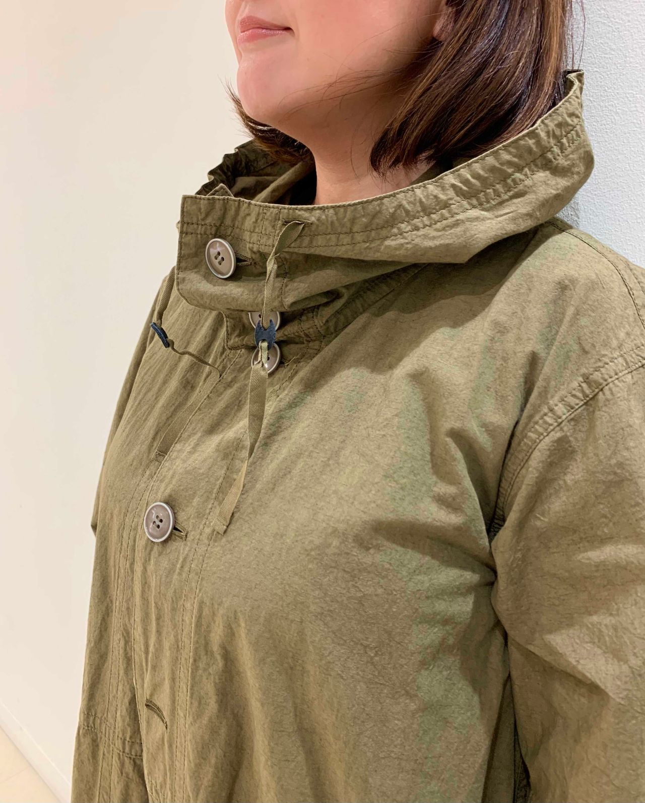 ボタンを留めるとしっかり首元隠れるデザインになってます。